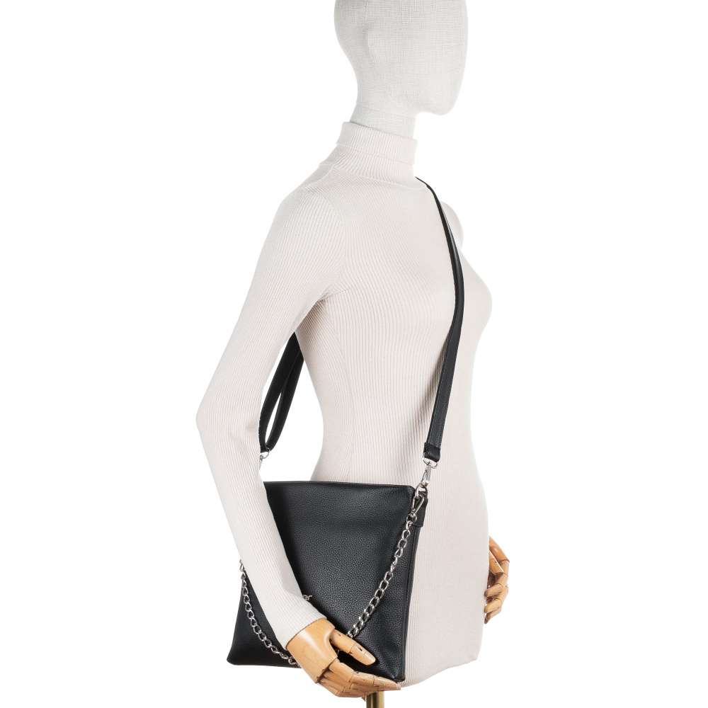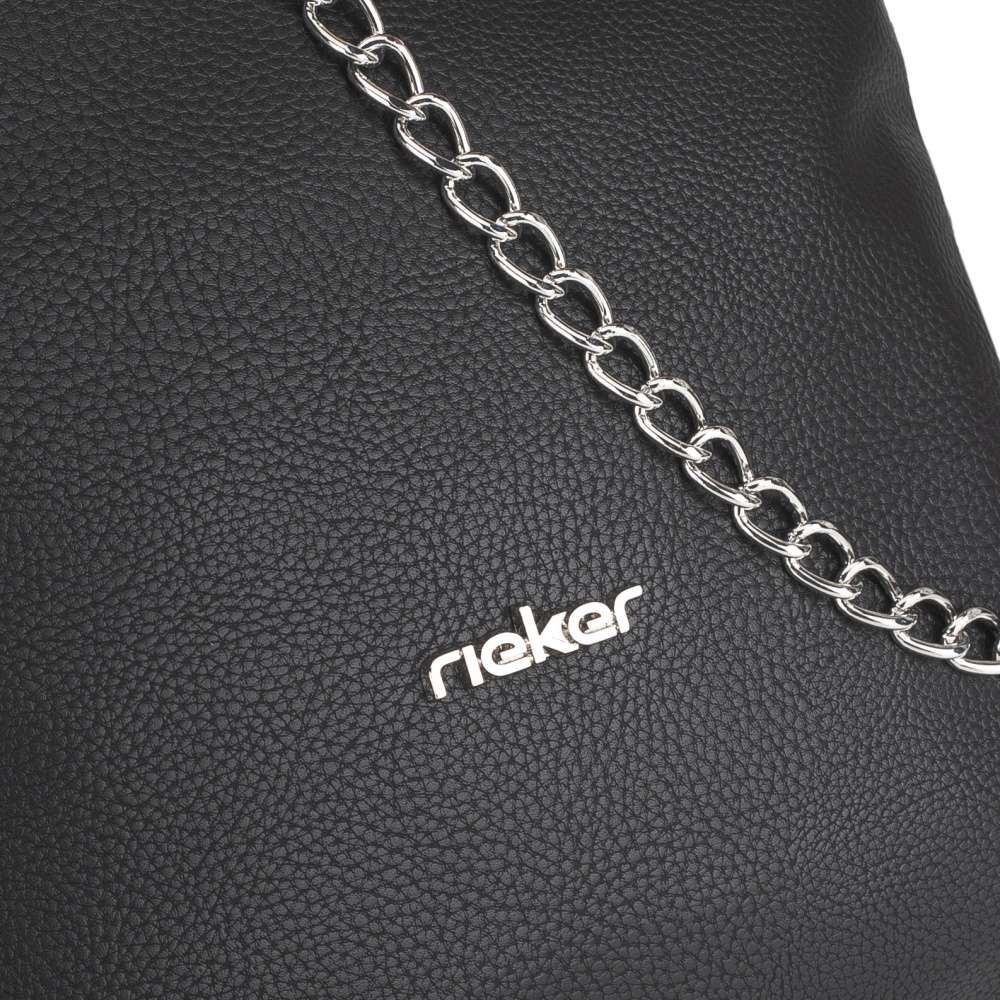 Tento model kabelky RIEKER je ztělesněním nadčasové elegance a funkčnosti. Černý svršek kabelky RIEKER je zdoben decentním logem značky na přední části, které se jemně třpytí stříbrnou barvou a dodává kabelce stylový prvek. Kromě estetického výrazu nabízí kabelka promyšlené a praktické řešení úložného prostoru. Hlavní prostor kabelky je prakticky dělený středovou kapsou se zipem na dvě samostatné části, které poskytují dostatek místa pro všechny vaše každodenní potřeby. V každé části je menší kapsička pro uložení drobných předmětů. Dekorativní řetízek ideální pro nošení přes rameno dodává kabelce noblesu, díky které se stává nejen módním doplňkem, ale také výrazem osobního stylu. Díky délkově nastavitelnému ramennímu popruhu si můžete kabelku pohodlně přizpůsobit – nosit ji přes rameno nebo přes tělo dle aktuální nálady či outfitu, obě varianty jsou odepínatelné pro variabilitu v nošení. Tento model je ideální kombinací módního designu a praktičnosti, takže vás bude skvěle reprezentovat při každé příležitosti – ať už v práci, během procházky městem, na kávě s přáteli nebo na večerní akci.