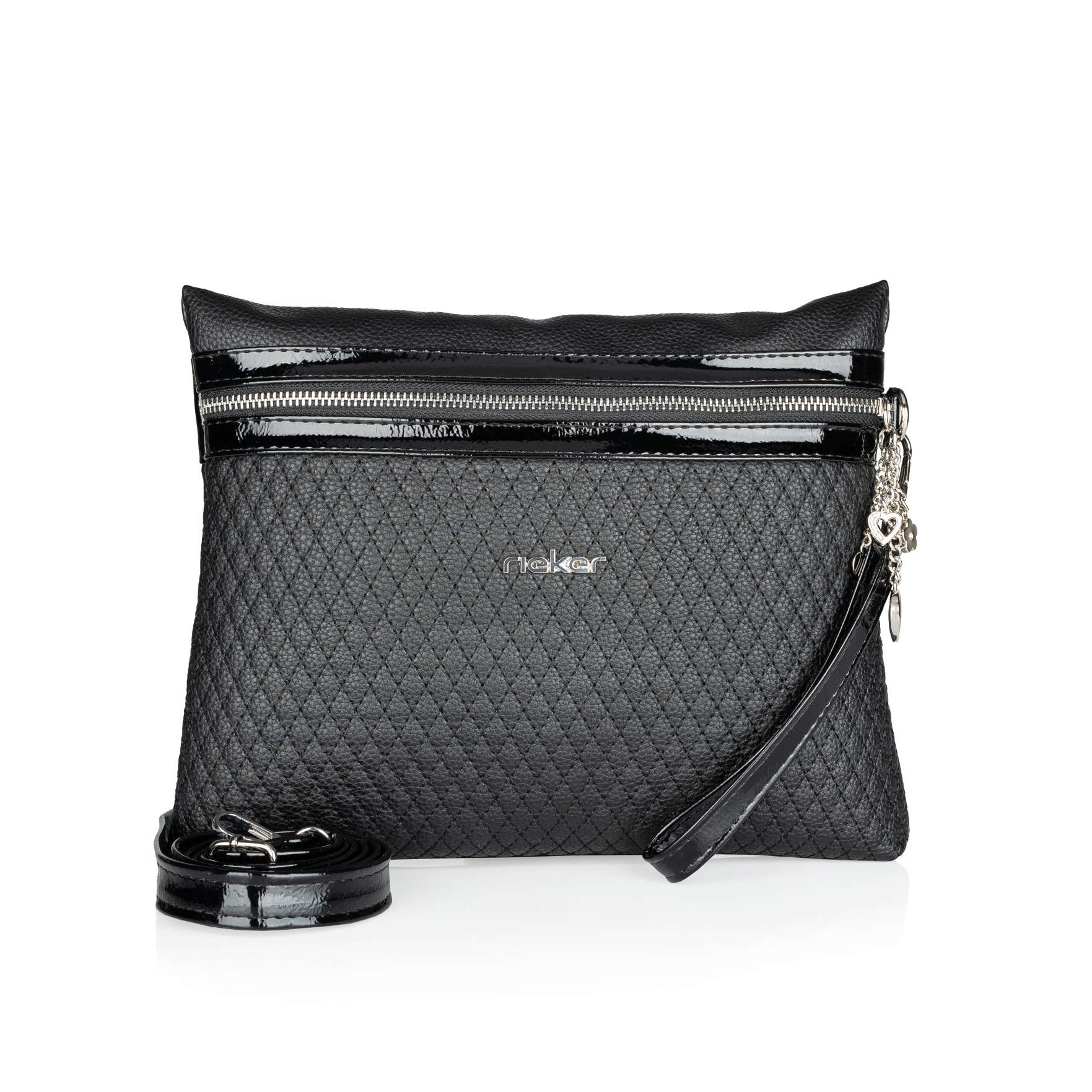 Styl a elegance se prolínají v této kabelce Rieker. Příjemný materiál je decentně prošitý, ozdobený logem značky a přívěskem na zipu, který uzavírá hlavní úložný prostor. Praktická malá kapsička se zipem ve vnitřní části slouží k uložení drobných věcí. Můžete si zvolit variantu nošení, ať už jako crossbody, do ruky s krátkým úchytem nebo přes rameno bude tento kousek šperkem vašeho vzhledu.