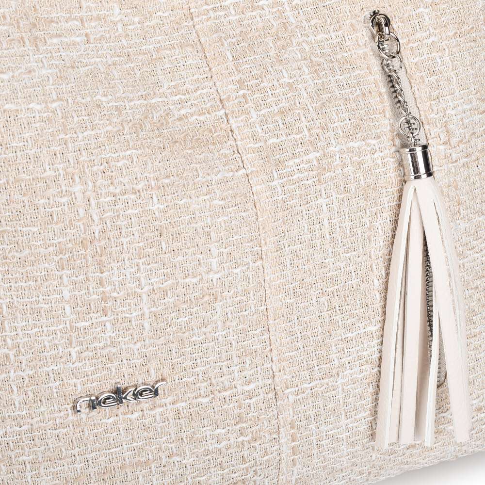 Tento model kabelky RIEKER je ukázkou toho, jak lze propojit moderní design s praktickým využitím a kvalitním zpracováním. Na první dotek i pohled zaujme strukturou textilního materiálu v podmanivé barevné kombinaci, která dodává kabelce nezaměnitelný charakter a logo značky dodá punc originality. Kromě estetické stránky nabízí kabelka také řadu praktických řešení. Přední kapsička na zip poskytuje praktický prostor pro uložení drobností a je doplněna o výraznou visačku dodávající kabelce módní akcent svým materiálem. Zadní kapsa se zipem je ideálním řešením pro menší předměty, které potřebujete uchovat v bezpečí. Promyšlený interiér uzavřený zipem nabízí přehledné uspořádání – dvě přihrádky, z nichž jedna je uzavíratelná zipem a druhá otevřená pro snadný přístup k uloženým věcem. Kabelka je vybavena kratším úchytem a délkově nastavitelným popruhem, který lze připnout a vytvořit si dokonalé pohodlí při nošení. Tato kabelka RIEKER vás bude spolehlivě provázet na cestě do práce, při procházkách městem i během volnočasových aktivit, přičemž vždy nabídne praktičnost a styl v dokonalé rovnováze.