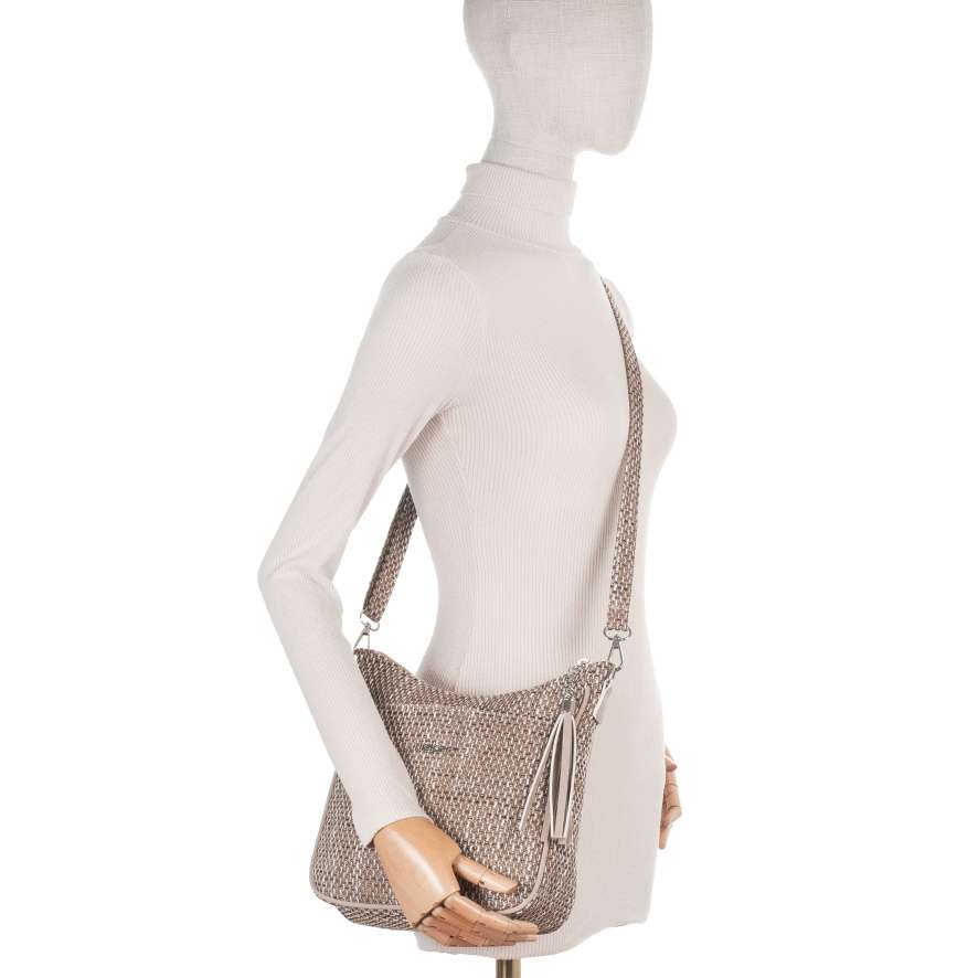 Kabelka má délkově nastavitelný popruh, který lze odepnout.