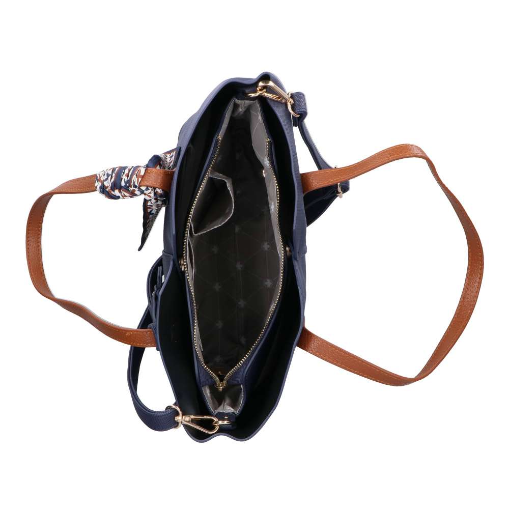 Roztomilá kabelka RIEKER v tmavě modré barvě okouzlí nejen svým vzhledem, ale také praktickým uspořádáním. Svršek je dekorován logem značky, visačkou s logem značky a nápaditým zdobením ucha kabelky, které dodává jedinečný šarm. Vnitřní prostor je promyšleně rozdělen středovou kapsou s menšími kapsičkami a uzavírá jej zip, zatímco boční části uzavírá magnetický klip, což zajistí dokonalý přehled o vašich věcech. Pro variabilitu nošení máte k dispozici dva kratší popruhy nebo odepínatelný, který lze nastavit délkově. Tato kabelka je skvělý doplněk pro každodenní eleganci!