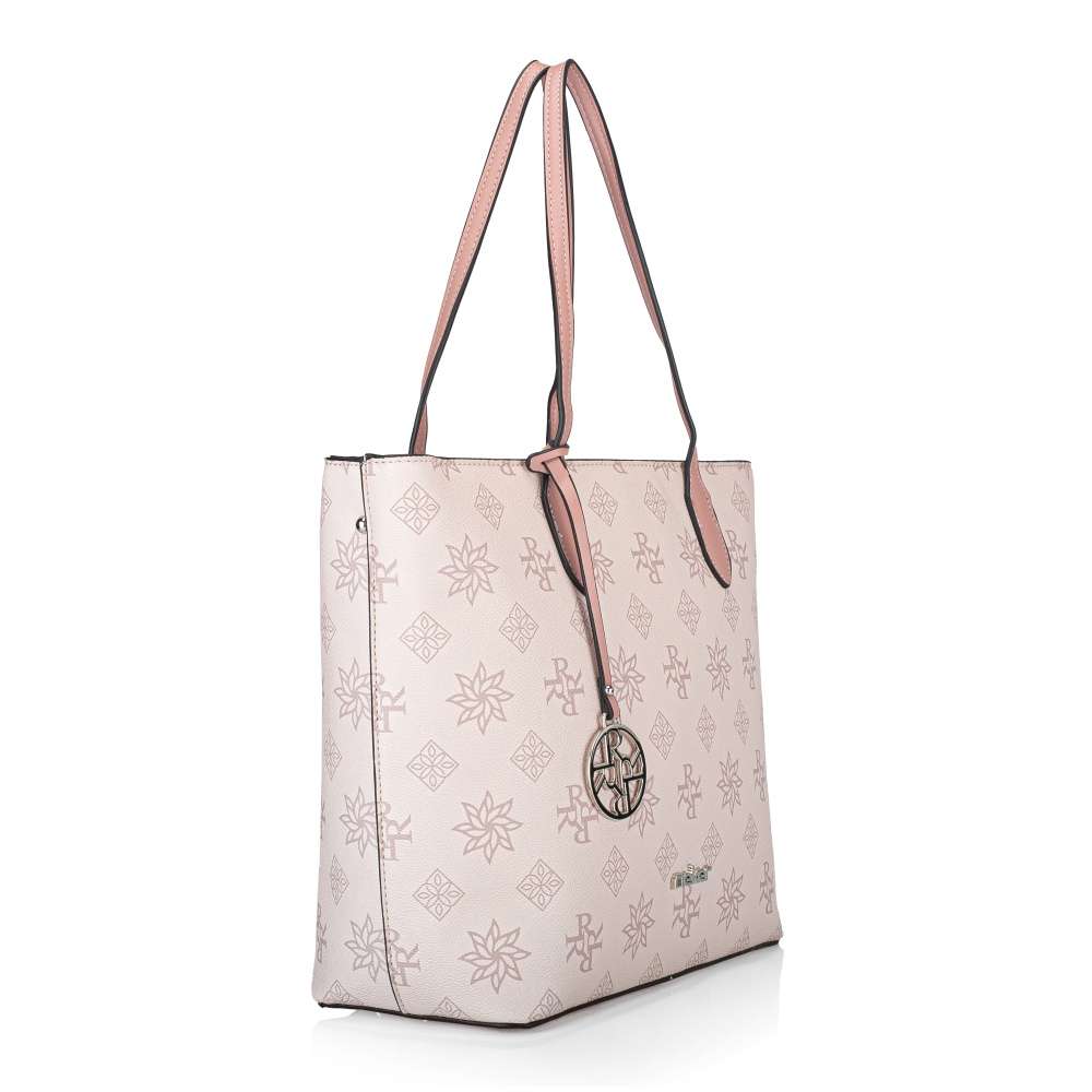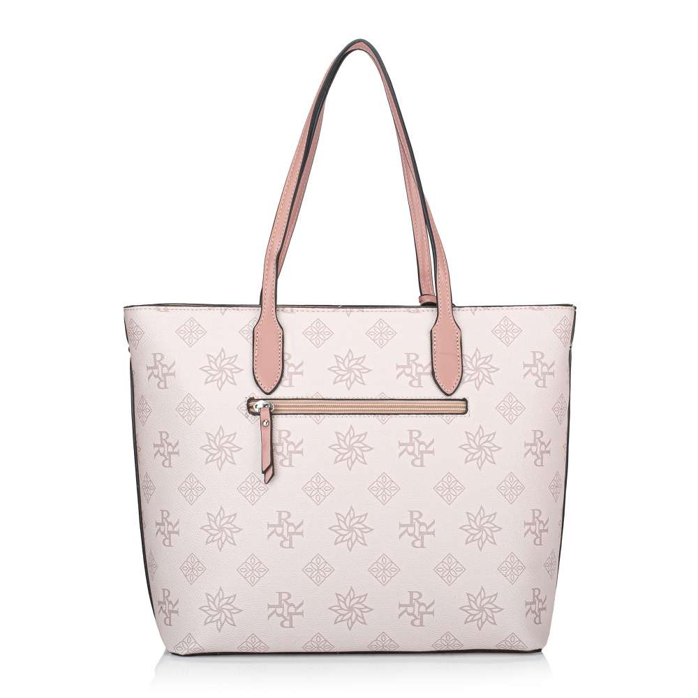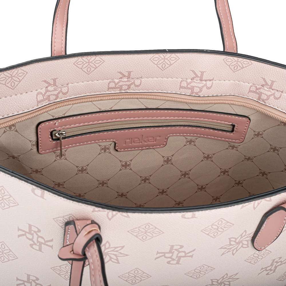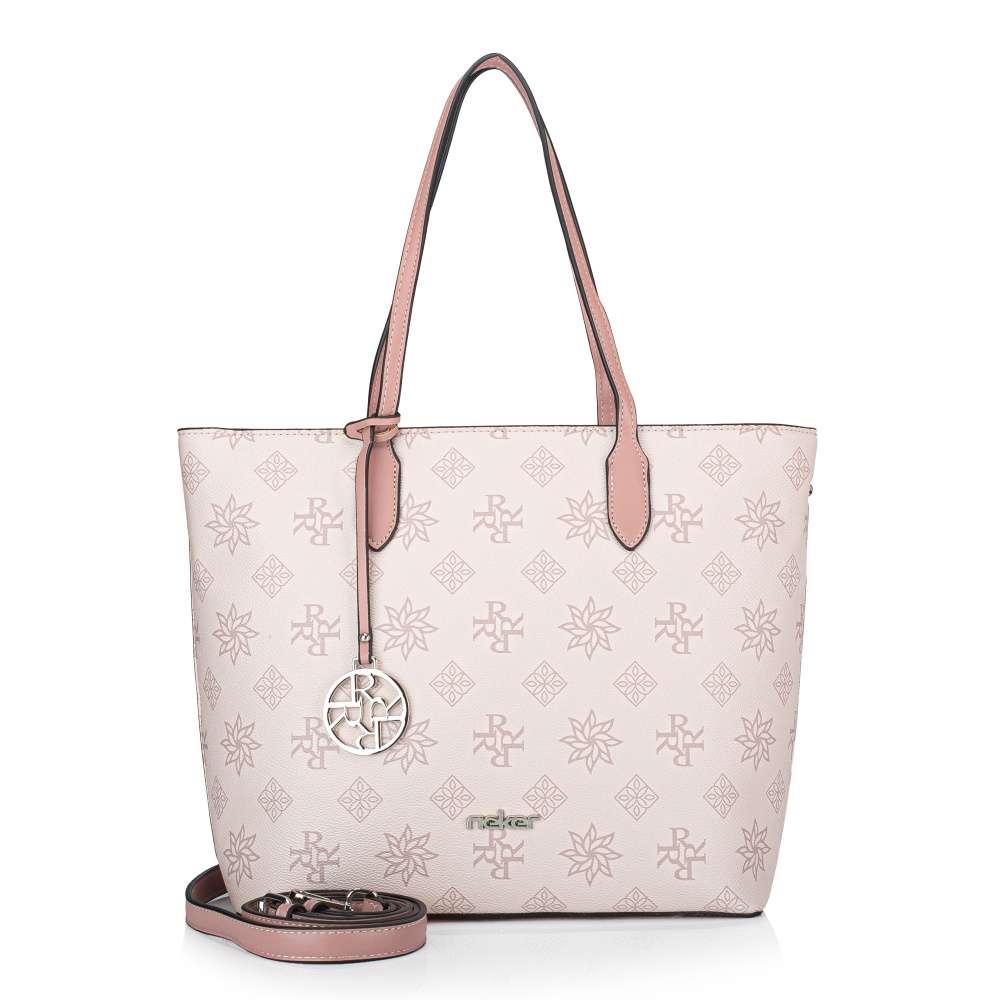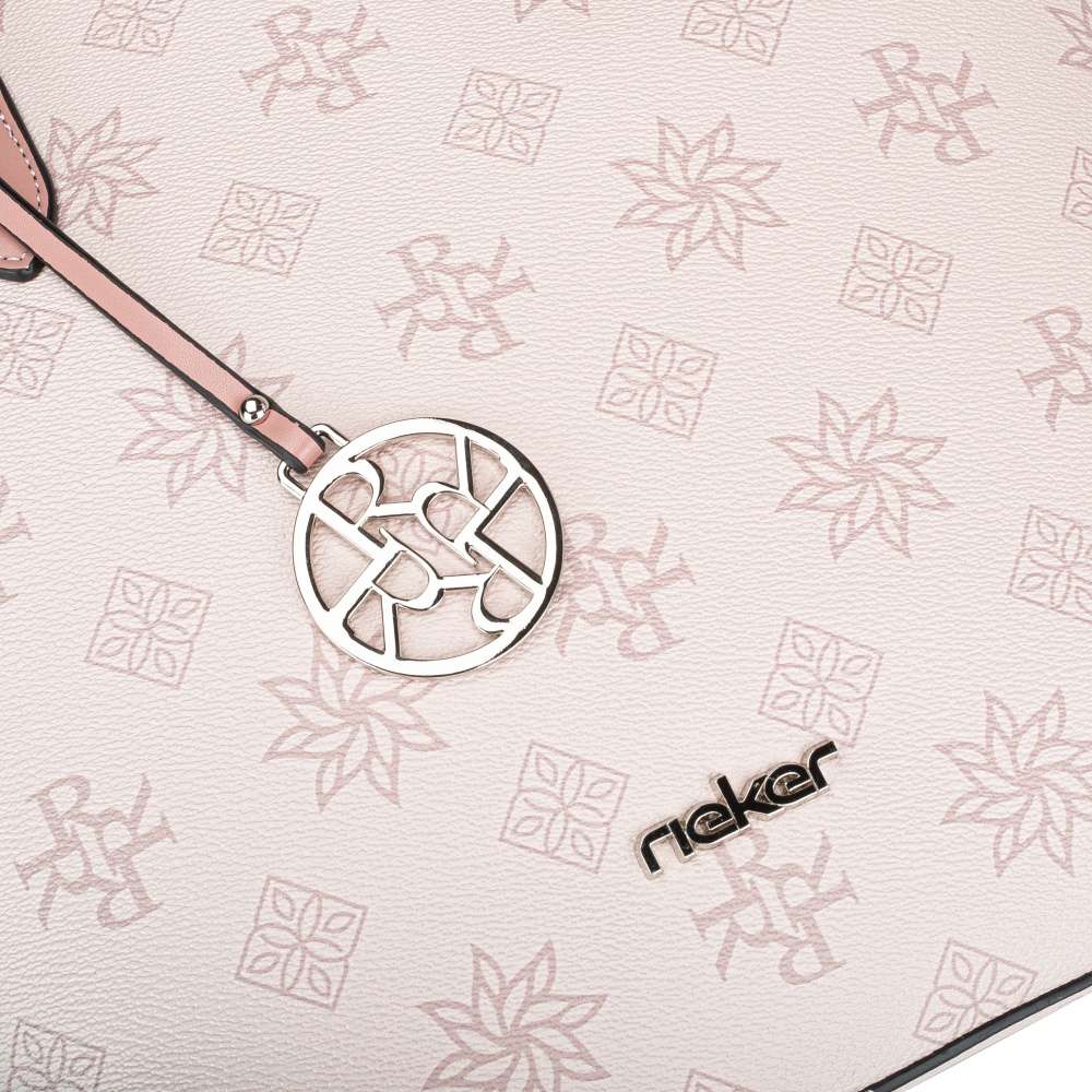 Stylová dámská kabelka značky RIEKER, jenž bude Vaší každodenní společnicí. Svršek má na sobě ozdobné vzory a logo značky. Pro moderní styl je na uchu kabelky ozdoba, kterou můžete kdykoliv sundat. Taška má na zadní straně menší kapsu, do které můžete dát doklady nebo klíče. Po otevření hlavní kapsy je dost prostoru pro větší předměty, jako třeba knížku, nebo menší kapsičky po stranách, kde můžete dát lesk na rty, nebo sluneční brýle. K modelu je přidán popruh přes rameno.
