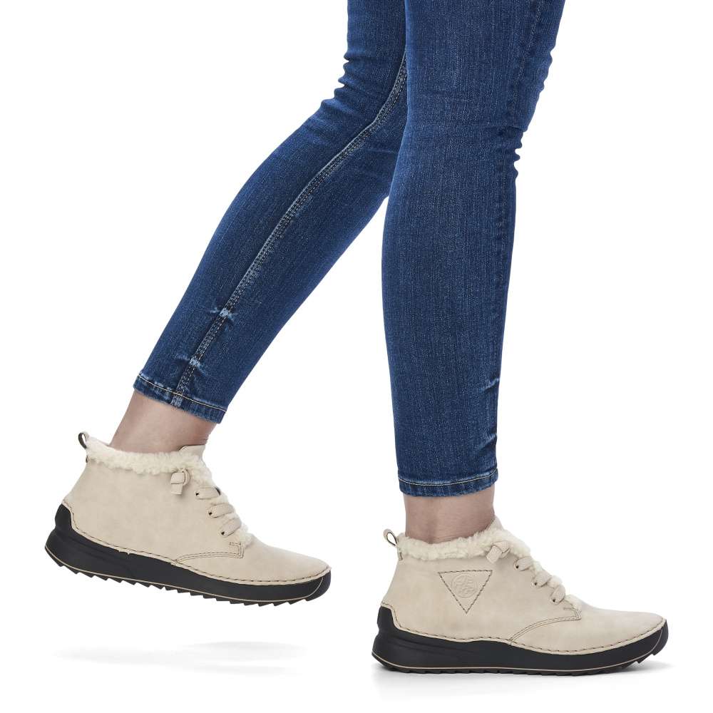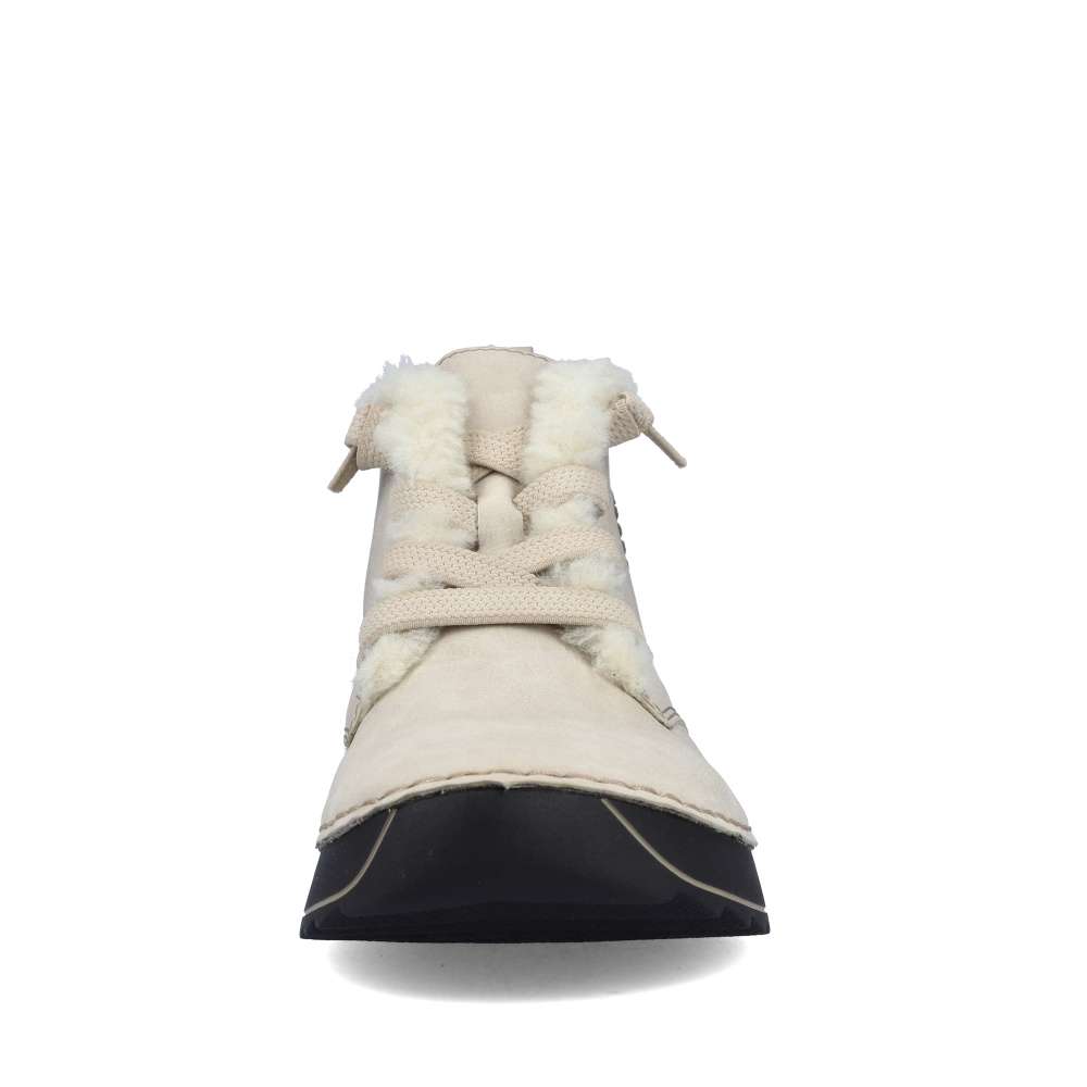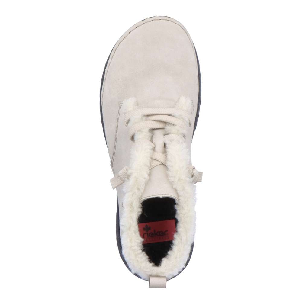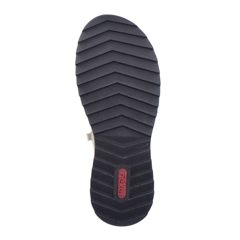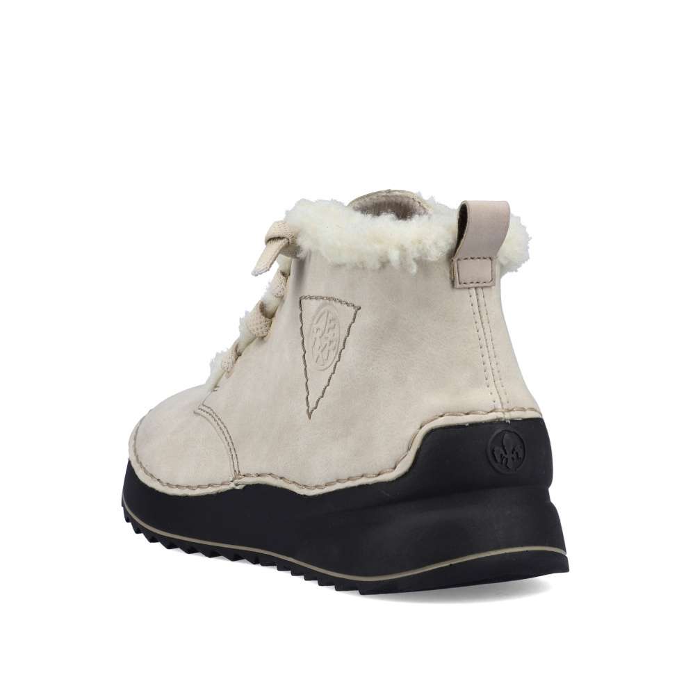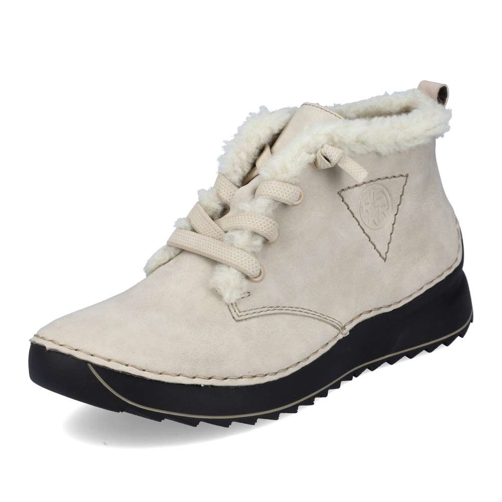 Tato moderní kotníková obuv od značky Rieker je unikátním kouskem, který musíte mít ve svém botníku. Svršek z kombinovaných materiálů je zdoben lehkým šitím a logem značky na vnější straně. Šněrování zajistí, že Vám bota skvěle sedne. Kožíšek lemující kotník a tkaničky dodává obuvi na originalitě. S měkkou stélkou se budete cítit pohodlně na každém kroku i po celý den.