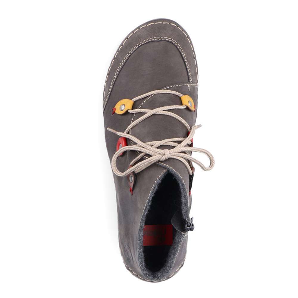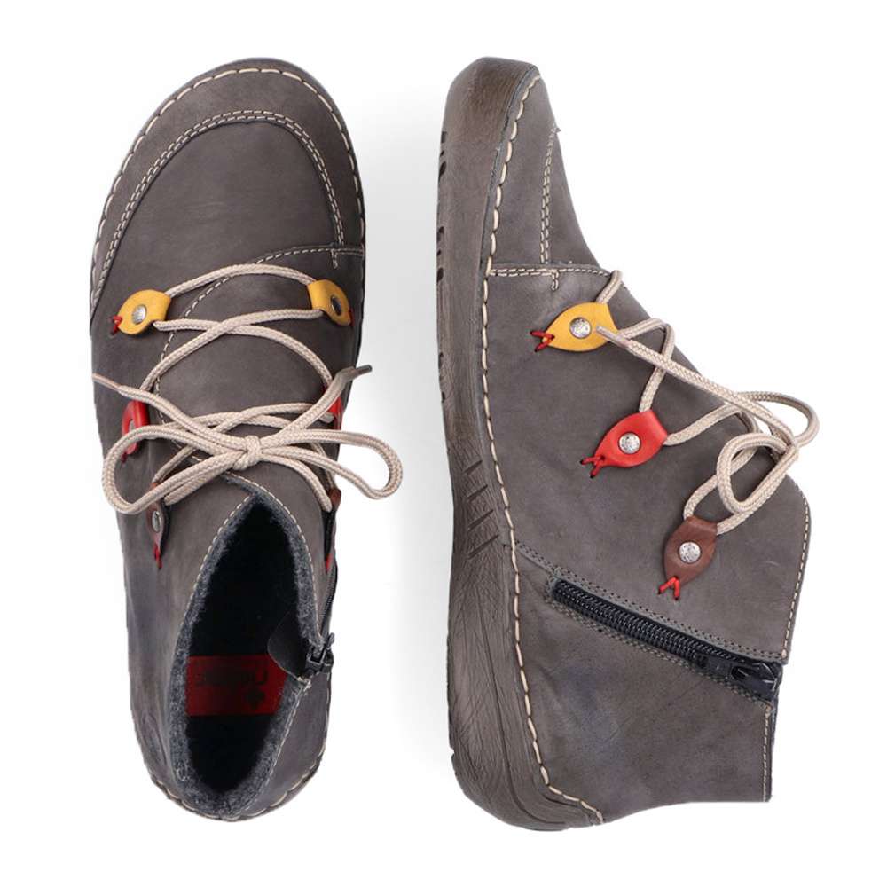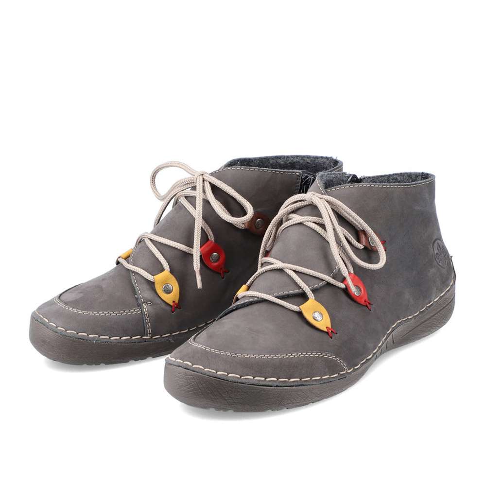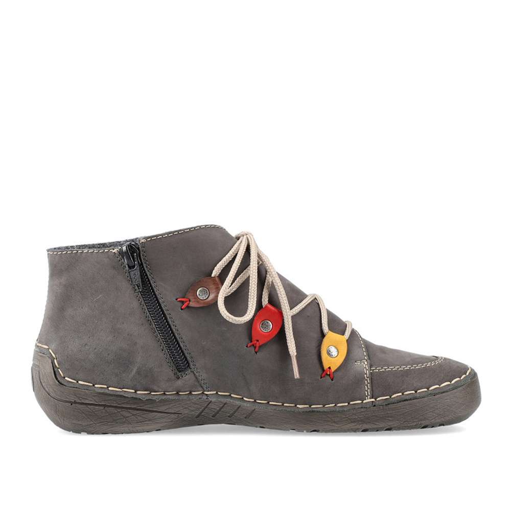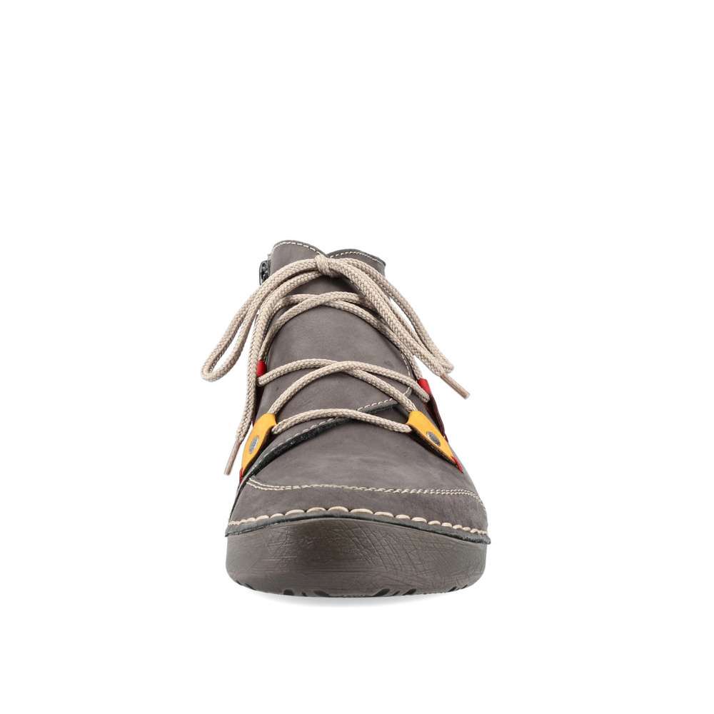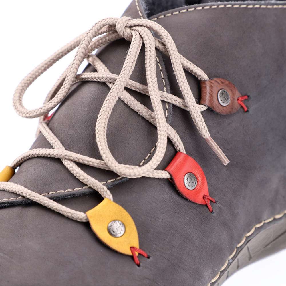 Zde máme netradiční model s překládaným svrškem pod tkaničkami. Úžasná šedá barva v kombinaci s barevnými úchyty na tkaničky Vás dostane. Na vnitřní straně je funkční zip pro snadné obutí a šněrováním si je upravíte dle svých potřeb. Tento model zateplený velurovou podšívkou užijete k pracovním či volnočasovým outfitům.