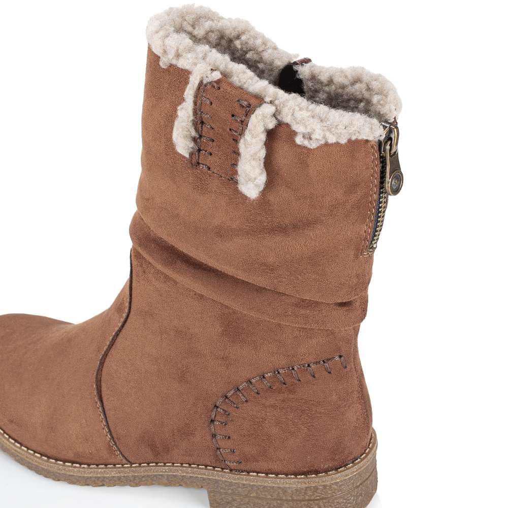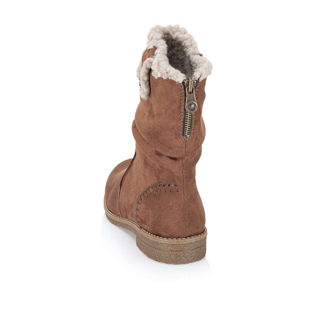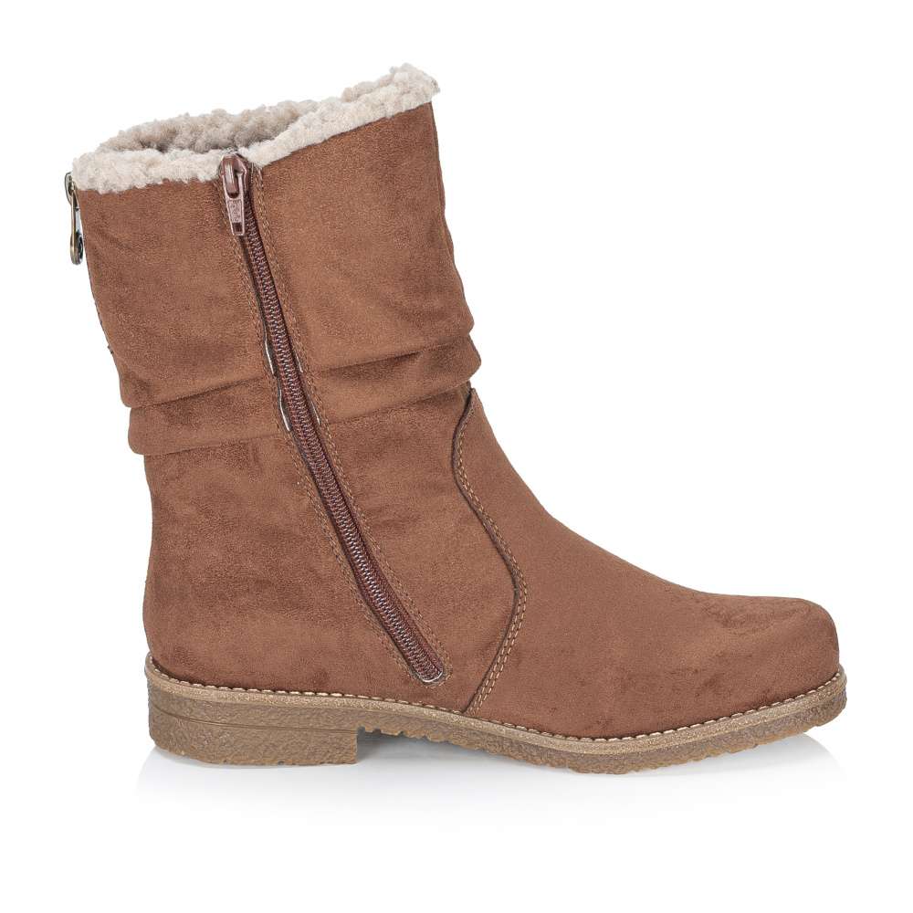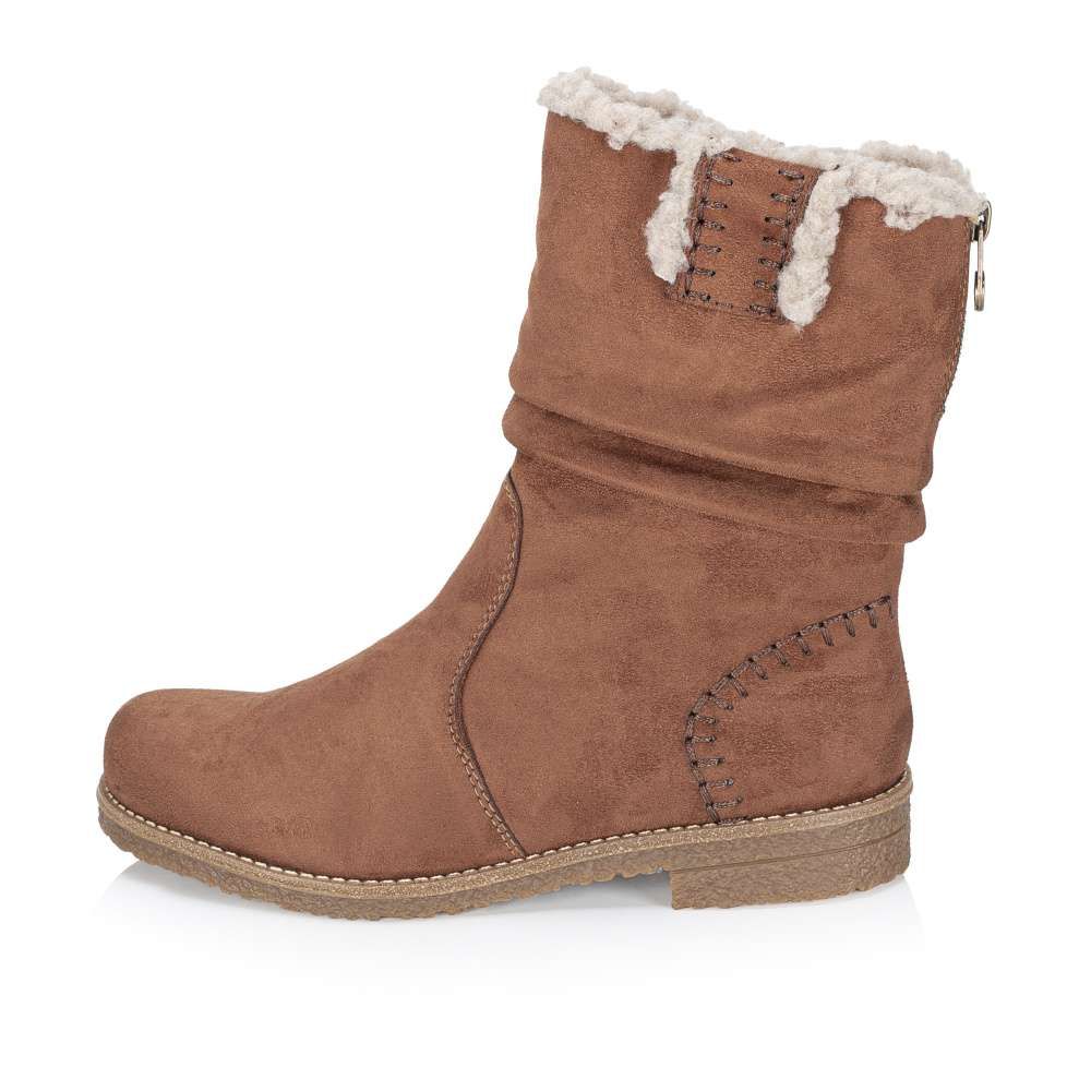 Tyto kotníkové boty značky RIEKER jsou ideální volbou pro ženy hledající kombinaci moderního stylu a pohodlí. Hnědý svršek působí nadčasově, přičemž efektní aplikace a výrazné prošití dodávají botám osobitý charakter. Boční zip zaručuje snadné a rychlé obouvání a zadní zip umožňuje mírné rozšíření obvodu kolem kotníku, aby se boty pohodlně přizpůsobily různým tvarům nohy. Hřejivé textilní zateplení udrží vaše nohy v teple i během chladnějších dnů a měkká, pohodlná stélka poskytuje dokonalý komfort při každodenním nošení. Podešev s tlumením nárazů snižuje únavu při chůzi a poskytuje stabilitu na různých površích. Tento model je ideální pro běžné nošení do práce, procházky nebo víkendové aktivity, přičemž spojuje stylový design s praktickými detaily.