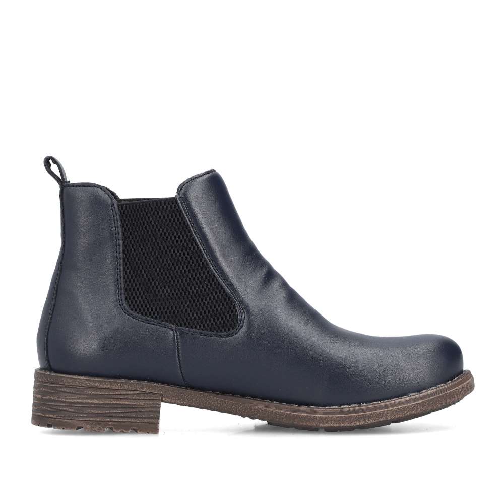 Kotníkové boty RIEKER v mladistvě modré barvě představují nadčasový kousek vhodný pro každou příležitost. Jednoduché nazutí a pohodlné přizpůsobení poskytnou elastické boční části, nazutím se Vám vytvoří komfortní pocit díky vyjímatelné měkké stélce, která dává možnost snadného čištění nebo výměny za jinou preferovanou stélku. V chladném počasí Vás zahřeje příjemné textilní zateplení podšívky. Stylový detail vzhledu dodává kontrastní podešev vybavená technologií tlumení nárazů při chůzi, každý krok do práce či volnočasové aktivity bude doprovázen dokonalým pohodlím.