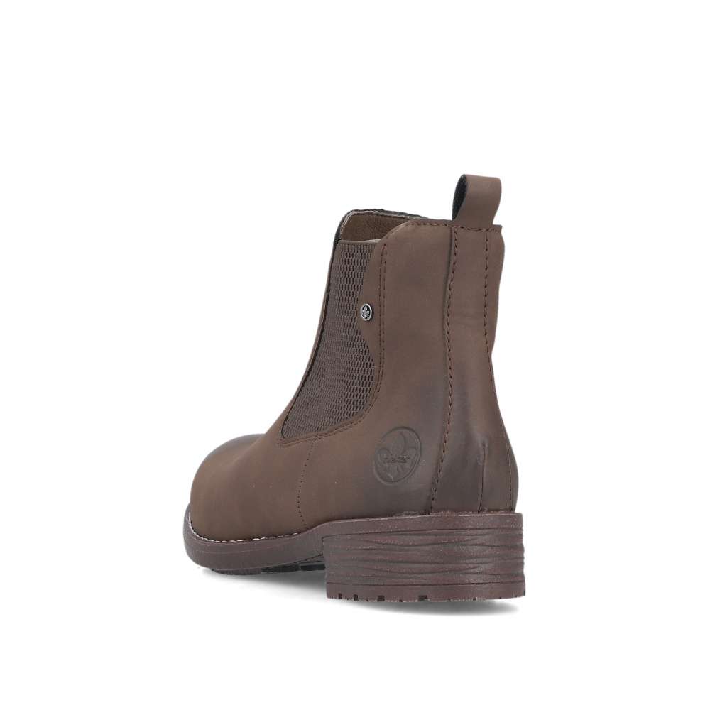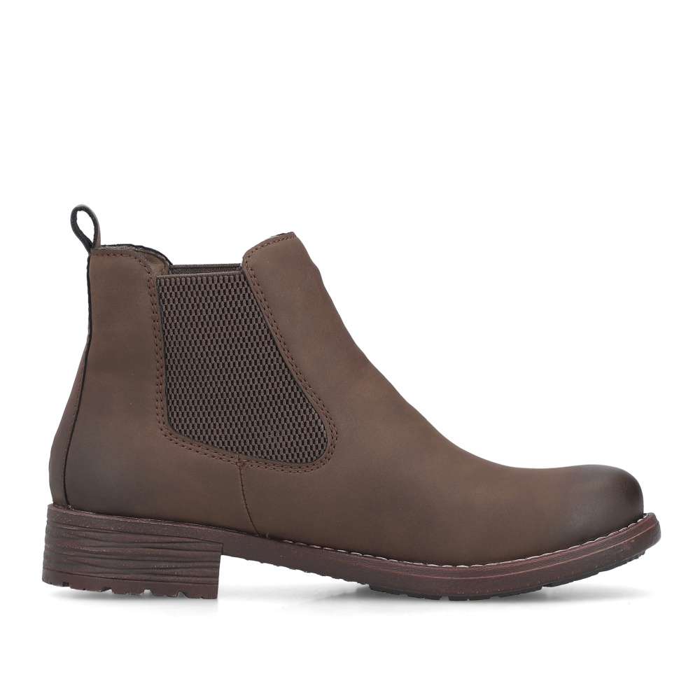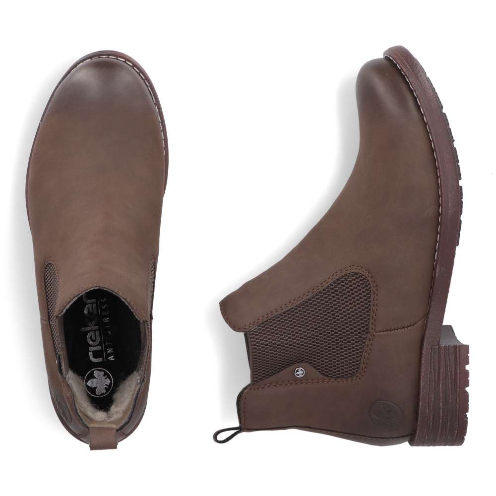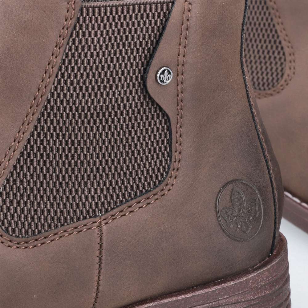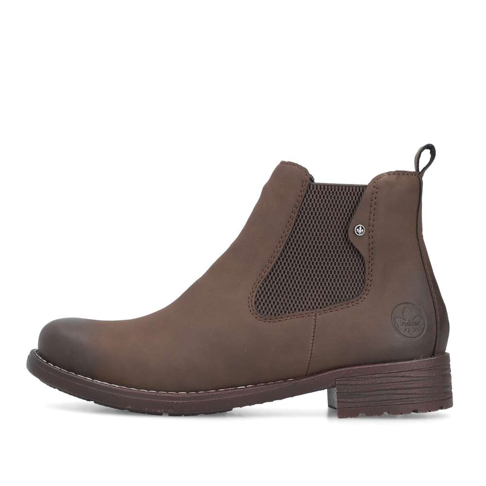 Kotníkové boty RIEKER v klasické hnědé barvě představují nadčasový kousek vhodný pro každou příležitost. Jednoduché nazutí a pohodlné přizpůsobení poskytnou elastické boční části, nazutím se Vám vytvoří komfortní pocit díky vyjímatelné měkké stélce, která dává možnost snadného čištění nebo výměny za jinou preferovanou stélku. V chladném počasí Vás zahřeje příjemné textilní zateplení podšívky. Stylová podešev vybavená technologií tlumení nárazů při chůzi zpříjemní každý krok do práce či volnočasové aktivity.
