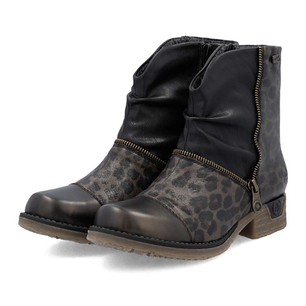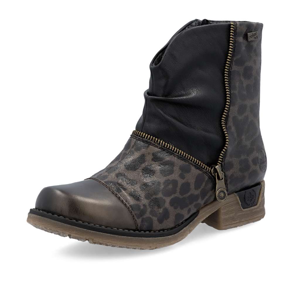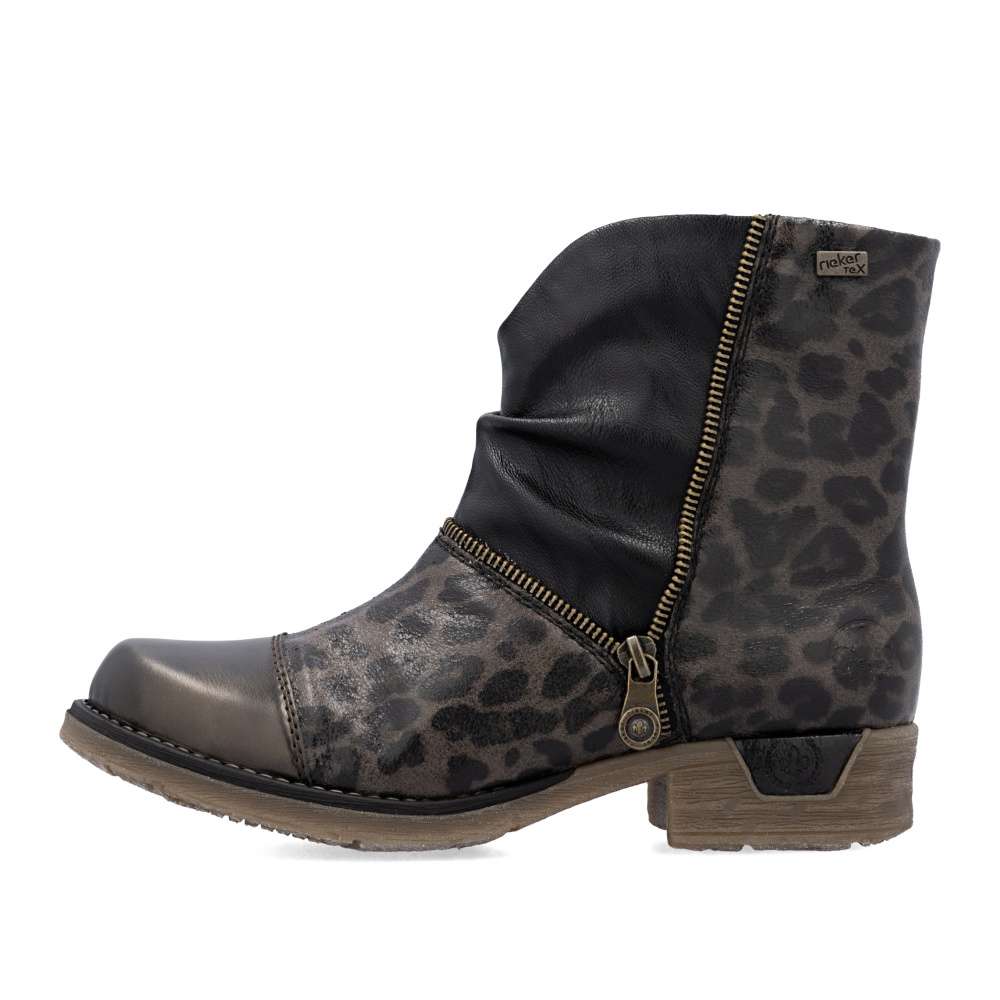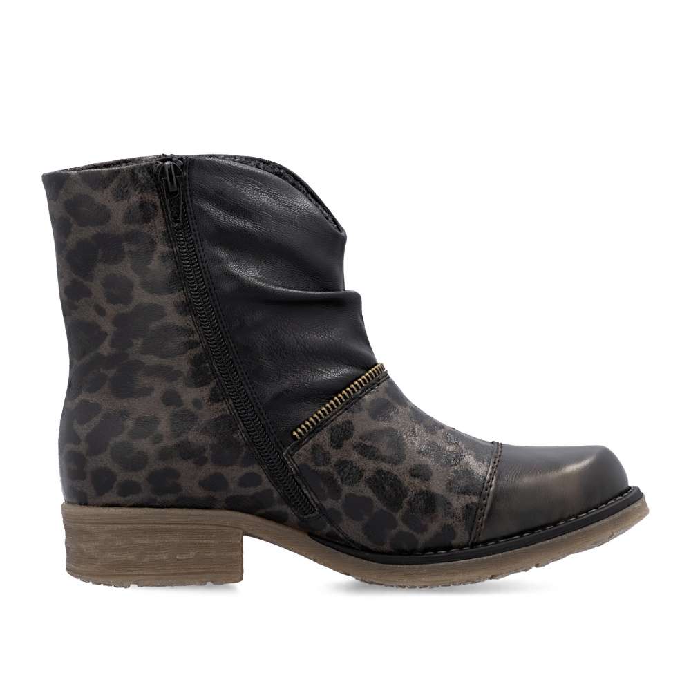 Tyto boty RIEKER jsou spojením atraktivního vzhledu a praktických vlastností. Zaujmou moderní kombinací barev, vzoru a výraznou zipovou dekorací na svršku, nepřehlédnutelný design je doplněn o nepromokavou membránu čímž se tyto boty stávají vhodné i do nepříznivého počasí. Rychlé obutí zajišťuje boční zip, zatímco textilní podšívka a flexibilní, nárazy tlumící podešev zaručují pohodlí na každém kroku. Tento model je perfektní volbou pro ženy, které hledají stylovou, ale zároveň komfortní obuv pro každodenní nošení.