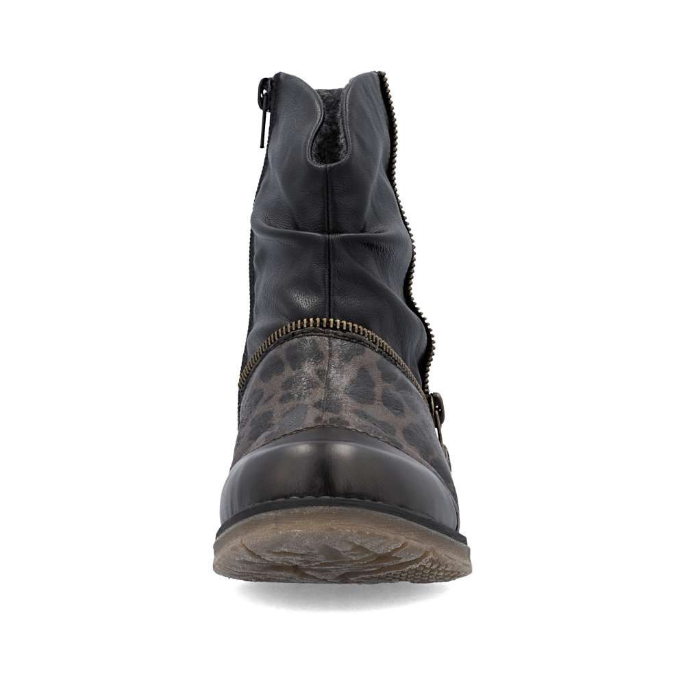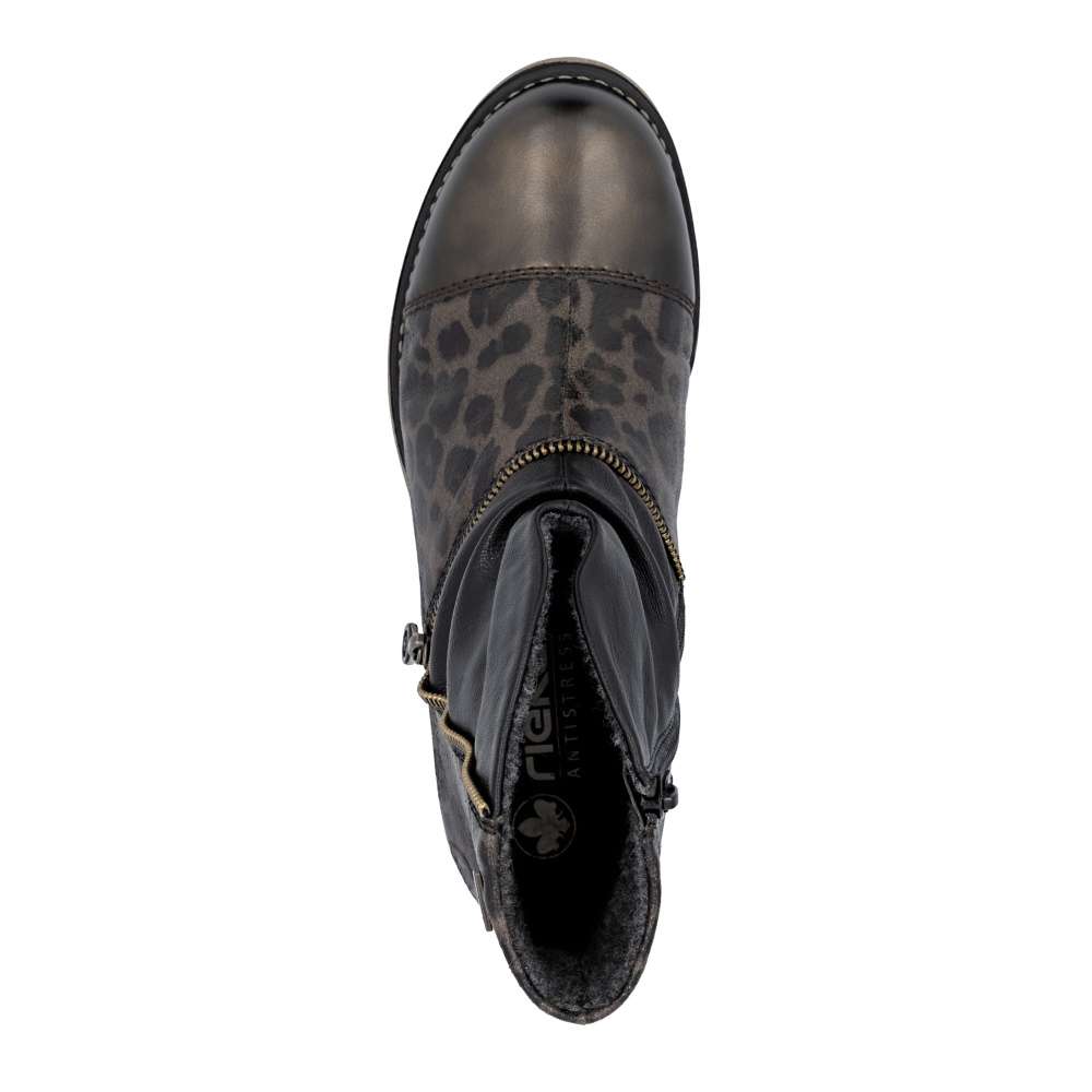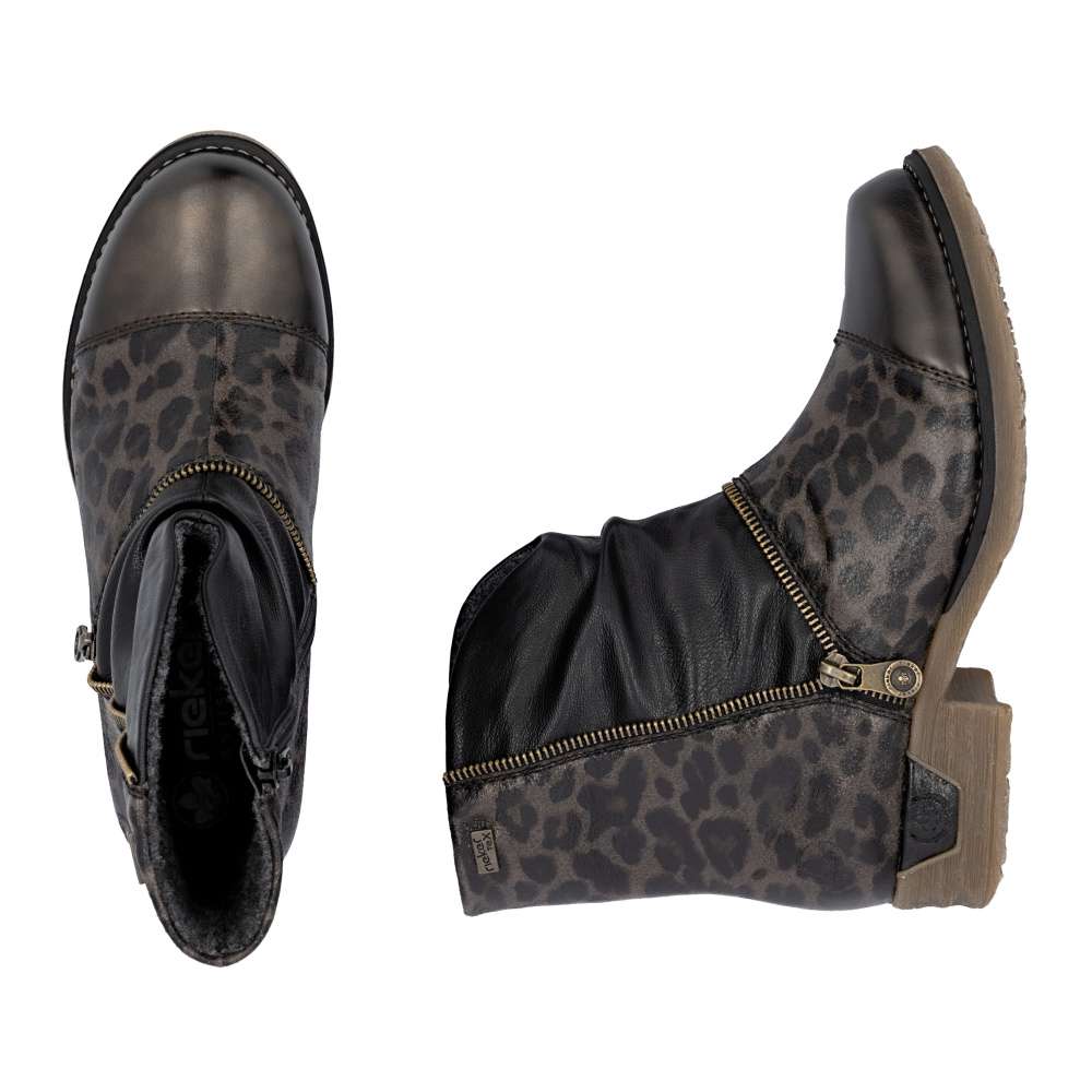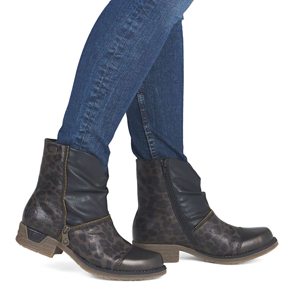 Tyto boty RIEKER jsou spojením atraktivního vzhledu a praktických vlastností. Zaujmou moderní kombinací barev, vzoru a výraznou zipovou dekorací na svršku, nepřehlédnutelný design je doplněn o nepromokavou membránu čímž se tyto boty stávají vhodné i do nepříznivého počasí. Rychlé obutí zajišťuje boční zip, zatímco textilní podšívka a flexibilní, nárazy tlumící podešev zaručují pohodlí na každém kroku. Tento model je perfektní volbou pro ženy, které hledají stylovou, ale zároveň komfortní obuv pro každodenní nošení.