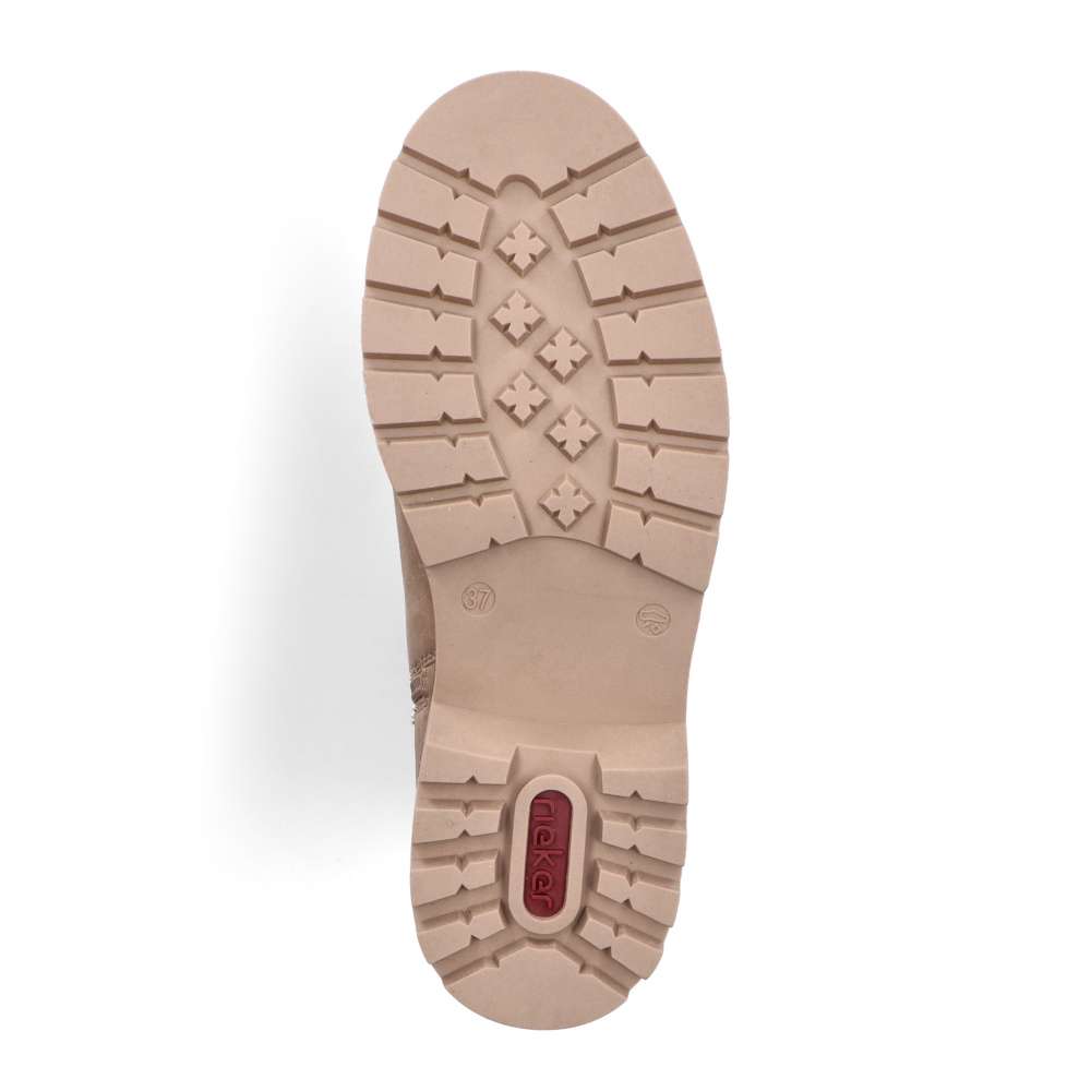 Kotníkové boty RIEKER v klasické béžové barvě jsou skvělou volbou pro ženy, které hledají stylový a zároveň pohodlný doplněk do každodenního šatníku. Výrazná podešev dodává modelu moderní vzhled a zajišťuje stabilitu při chůzi, navíc technologie tlumení nárazů se postará o vyjímečný komfort během celého dne. Elastická boční část a boční zip umožňují snadné obutí a dokonalé přizpůsobení bez zbytečného zapínání, nazutím si budete užívat příjemnou textilní podšívku. Tyto kotníkové boty RIEKER jsou ideální pro běžné nošení do práce i na procházky městem.