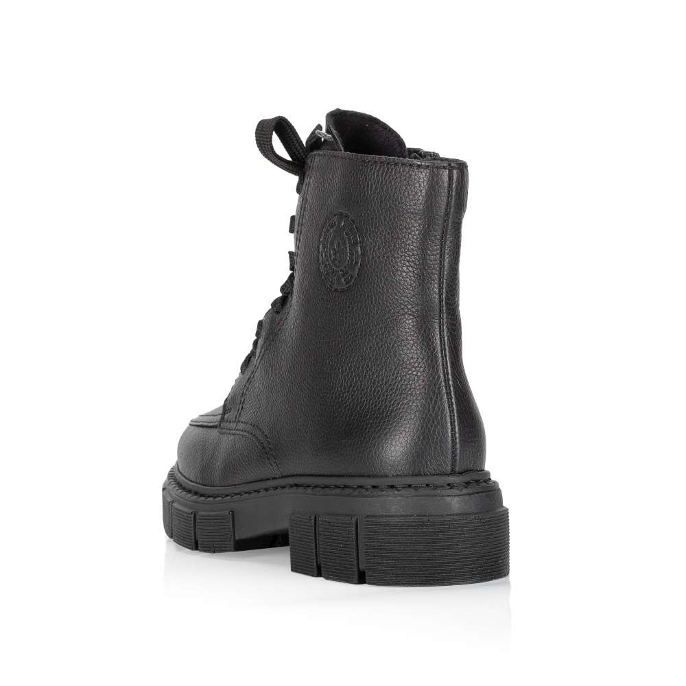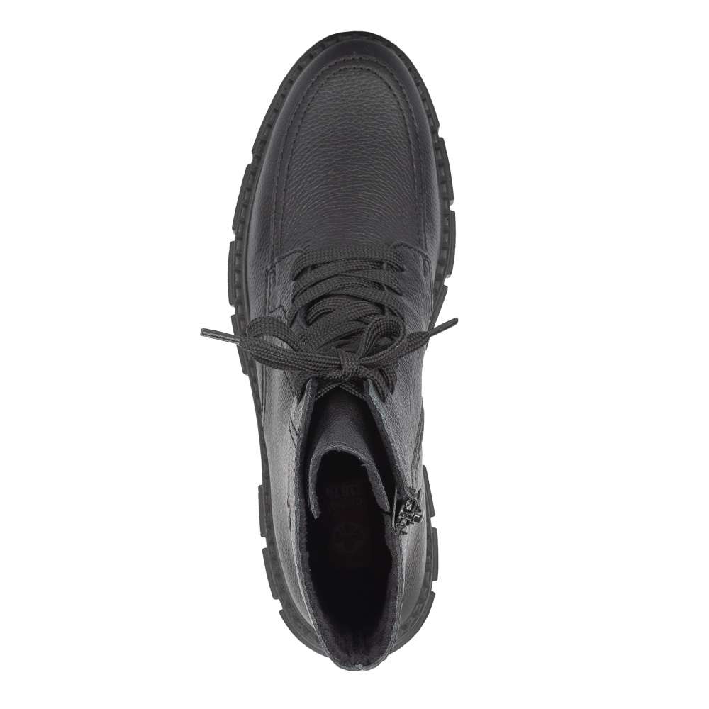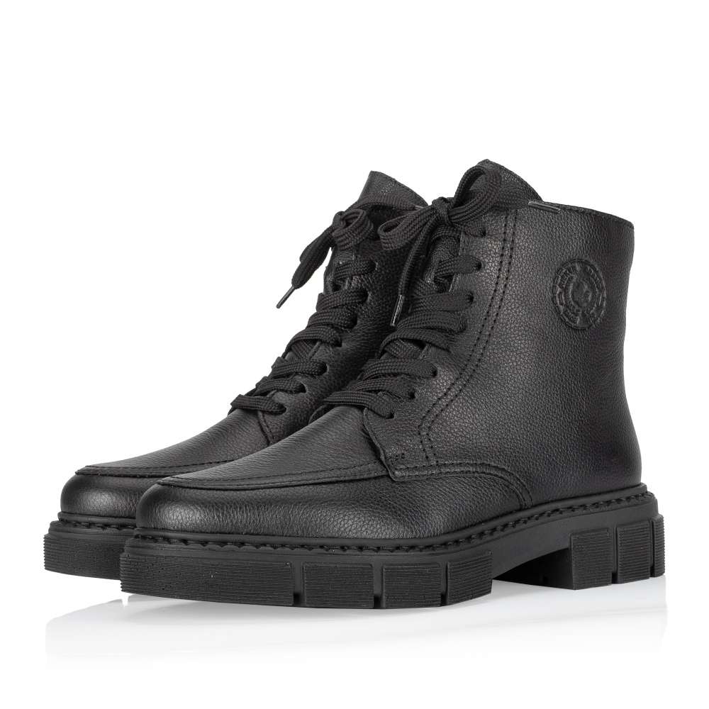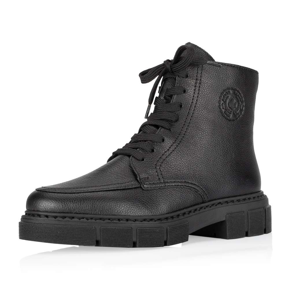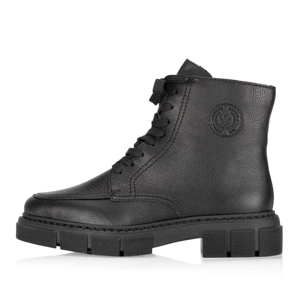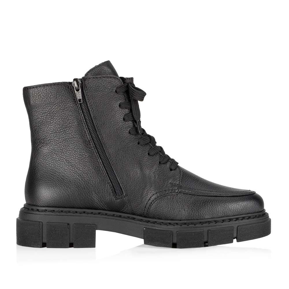 Dámské originální kožené kotníky od značky Rieker se perfektně hodí do nevyzpytatelného zimního období. Svršek je z kvalitní černé kůže, která je zdobena jemným prošitím a vyraženým logem značky Rieker nad kotníkem. Komfort při chůzi Vám zajistí hřejivá podšívka a flexibilní, lehká podešev, která tlumí nárazy při došlapu. Pro pohodlné obouvání poslouží zip na vnitřní straně a šněrováním si upravíte botu právě Vaší noze, tak aby to bylo pohodlné. Tento skvěly model se hodí jak do práce, tak na vycházku a budete jej prostě milovat.