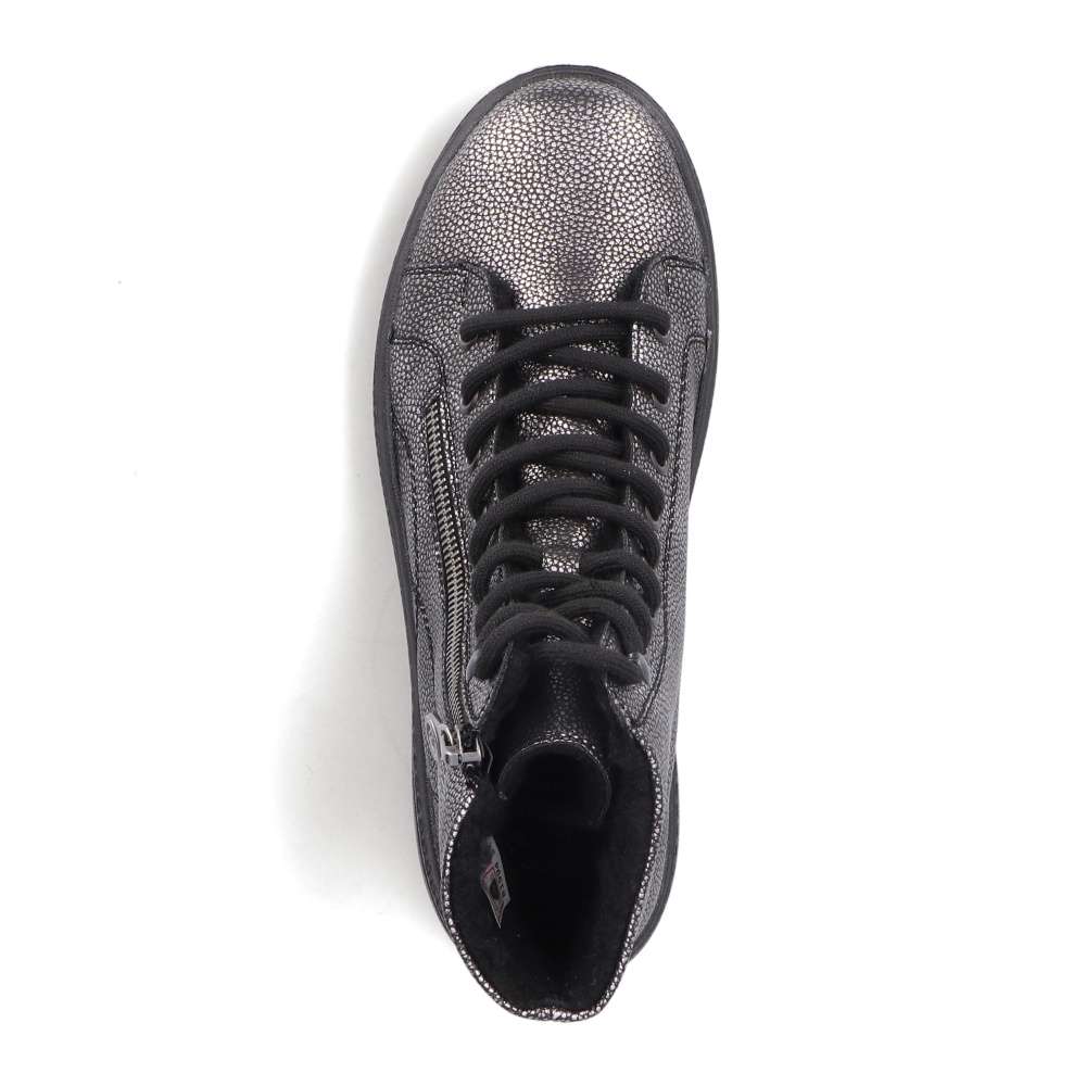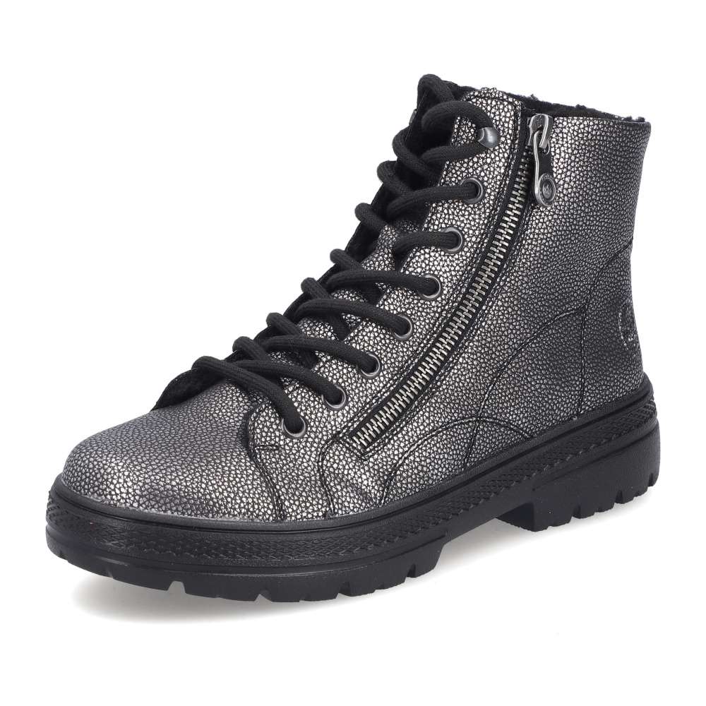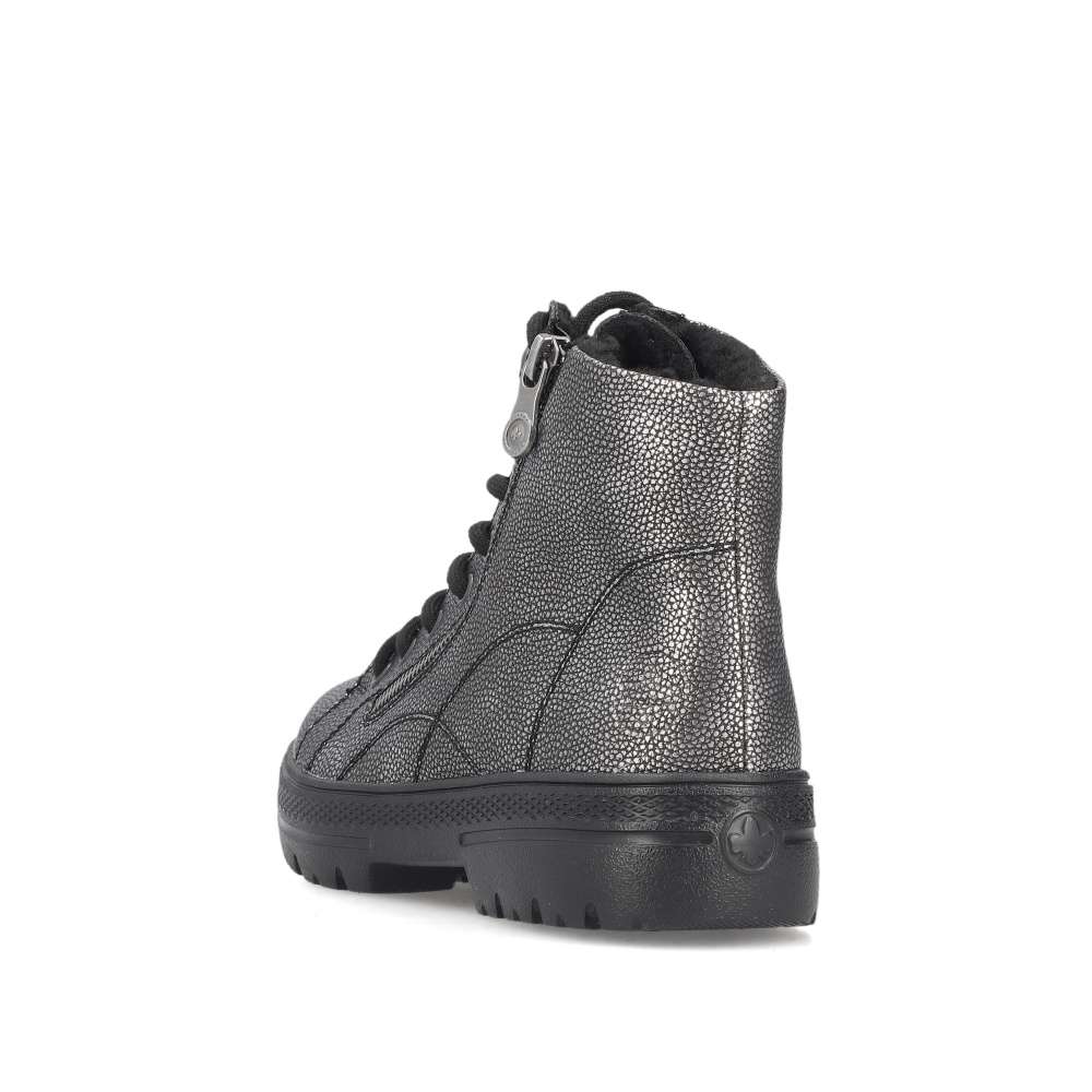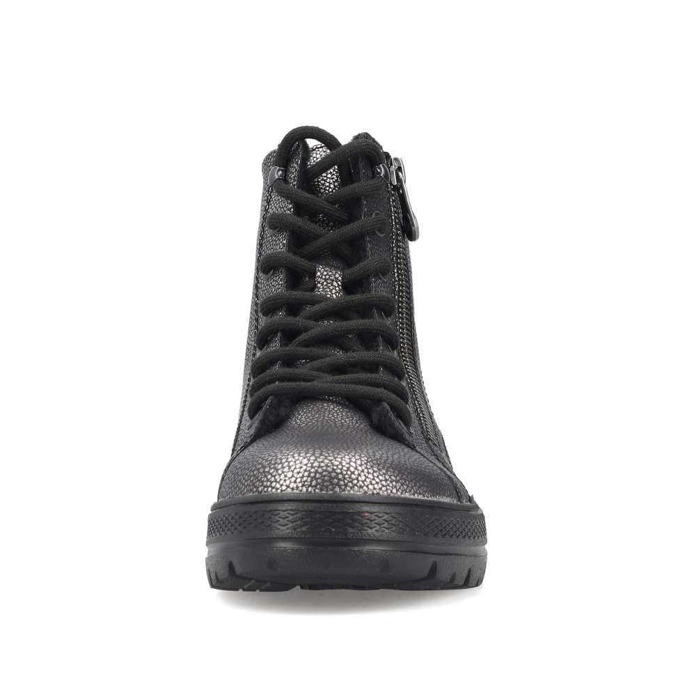 Tyto kotníkové boty RIEKER zaujmou na první pohled svým originálním designem – strukturovaný materiál s metalickými odlesky dodává modelu moderní a výrazný vzhled. Praktický zip umístěný na nártu umožňuje rychlé a pohodlné obutí, zatímco šněrování zajistí ideální přizpůsobení podle tvaru vaší nohy. Podešev s technologií tlumení nárazů poskytuje maximální komfort při chůzi, což oceníte zejména během dlouhých dní na nohou. O teplotní komfort se postará hřejivé vnitřní zateplení, díky kterému budou vaše nohy v teple i během zimního počasí. Stylové, pohodlné a funkční - tyto boty jsou perfektní volbou pro ženy, které chtějí i v zimě vypadat skvěle a cítit se komfortně.