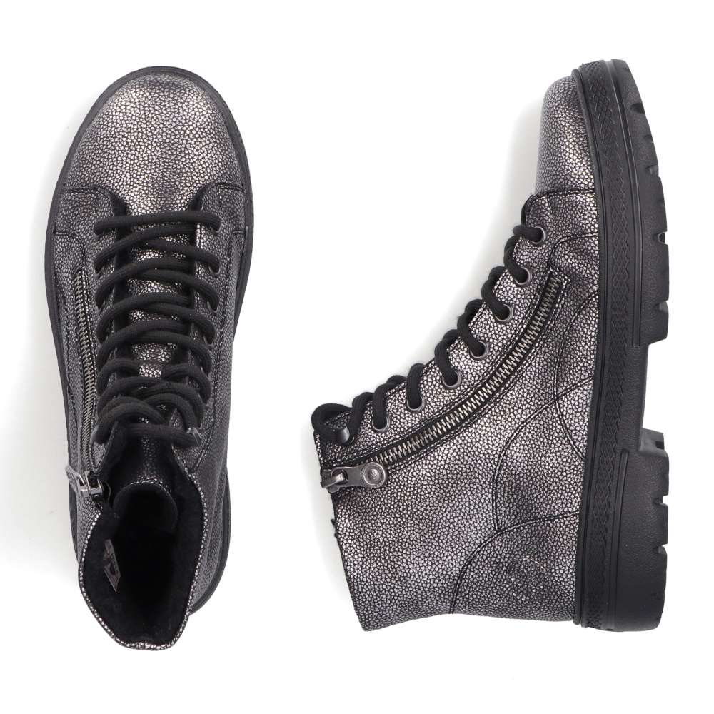 Technologie: Antistress – díky čtyřem antistresovým vlastnostem – lehkosti, pružnosti, prostornosti a vynikající absorpci nárazů – vám boty RIEKER nabídnou komfortnější chůzi. Rieker Soft – unikátní stélka vyrobená z prodyšného materiálu, která svým tvarem a materiálem zajistí pocit pohodlí při celodenním nošení. Tato bota je vybavena vyjímatelnou stélkou.