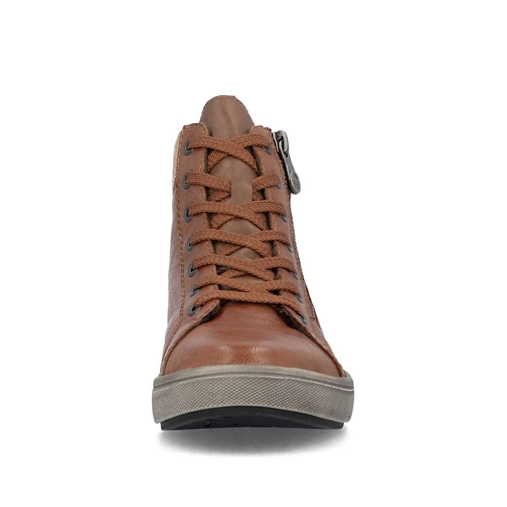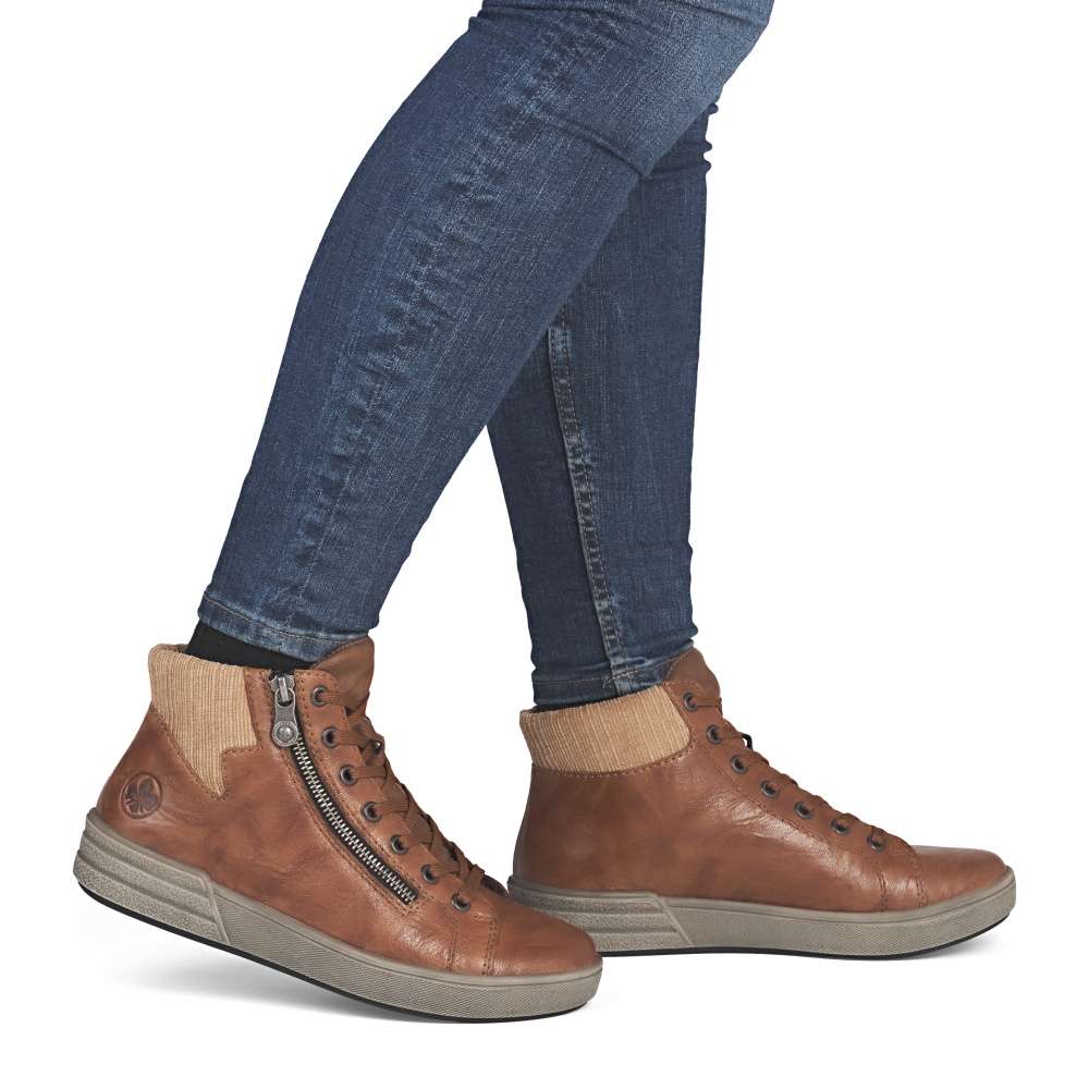 Tyto kotníkové boty RIEKER jsou navrženy tak, aby spojily styl, funkčnost a komfort, které od zimní obuvi očekáváte. Jejich hnědý kožený svršek působí univerzálně, přičemž textilní lem horního okraje ozvláštňuje design a decentní logo značky je jemným detailem, který podtrhuje kvalitu a prestiž značky. Pro snadné obouvání je model vybaven praktickým zipem lemujícím nárt a šněrování poskytne dokonalou úpravu individuálním potřebám každé z Vás. Uvnitř vás přivítá příjemná textilní podšívka a vyjímatelná stélka, která se dokonale přizpůsobí chodidlu a umožňuje snadnou údržbu či výměnu dle potřeby. O bezpečný a jistý krok se postará stabilní podešev, která navíc efektivně tlumí nárazy při chůzi a svým designem vytváří působivý doplněk vzhledu. Tyto kotníkové boty jsou ideální volbou pro ženy, které hledají kombinaci nadčasového designu, pohodlí a spolehlivosti. Perfektně se hodí pro každodenní nošení – do práce, na procházky městem či volný čas – a poskytnou vám pocit jistoty i během chladných zimních dnů.
