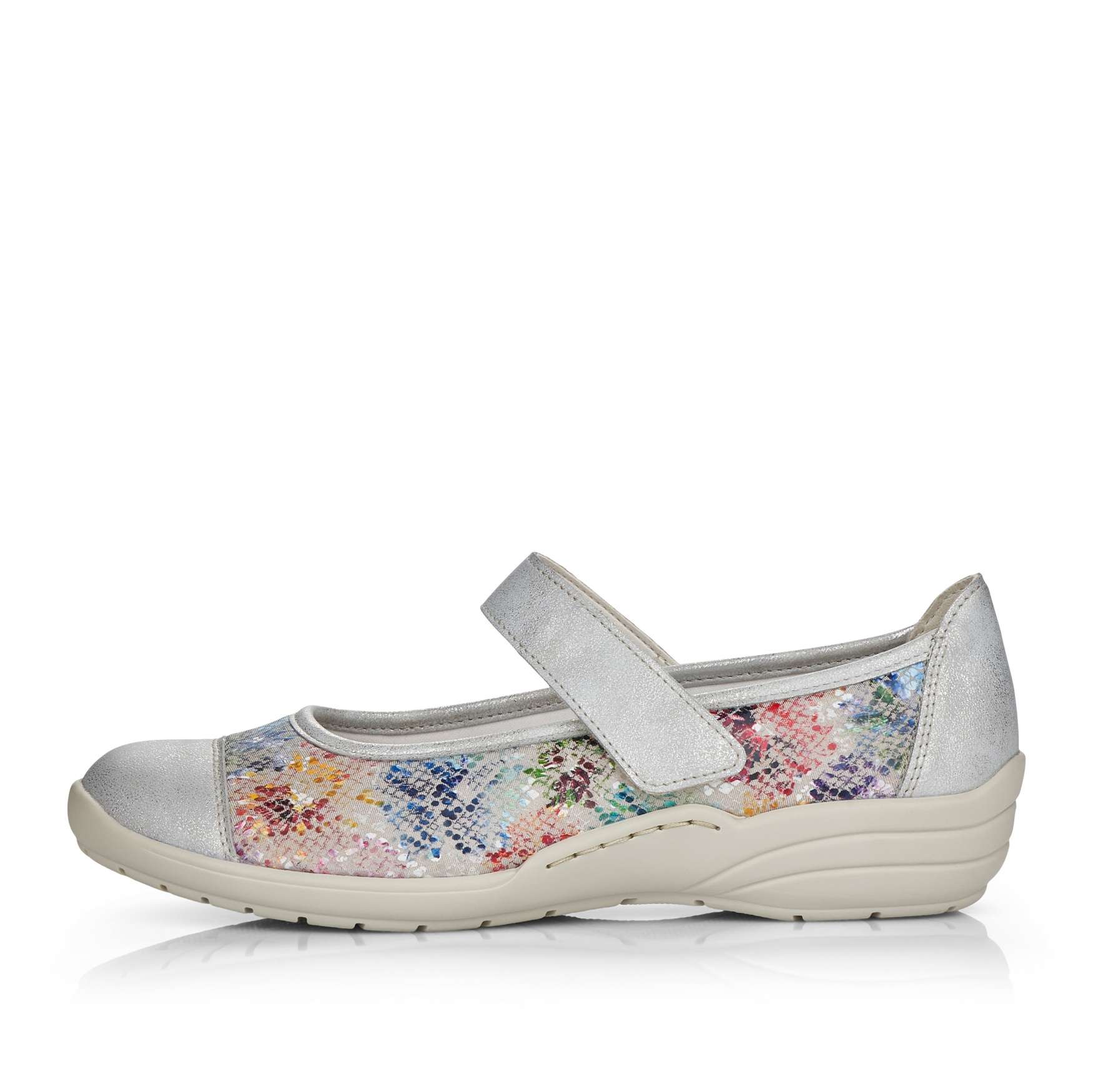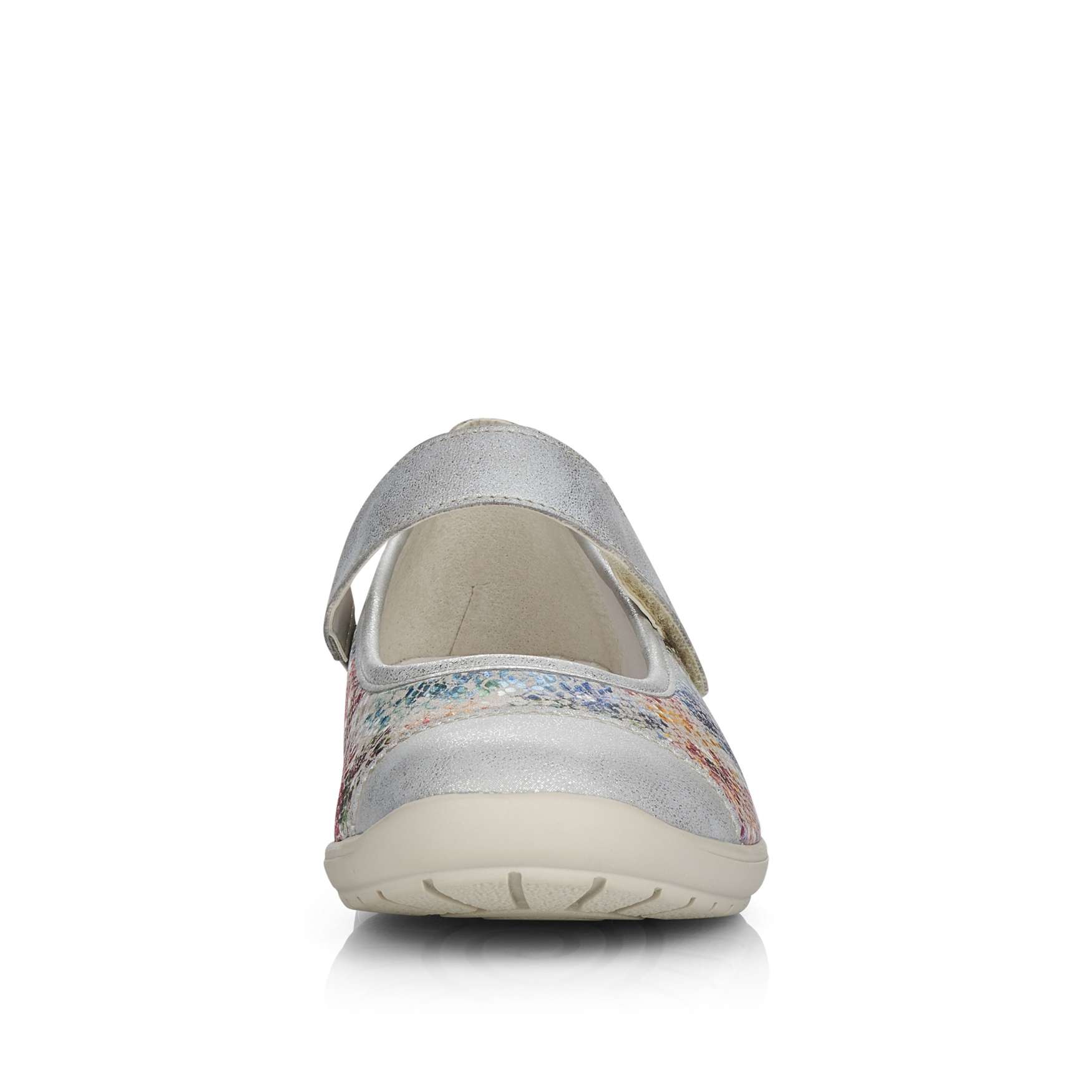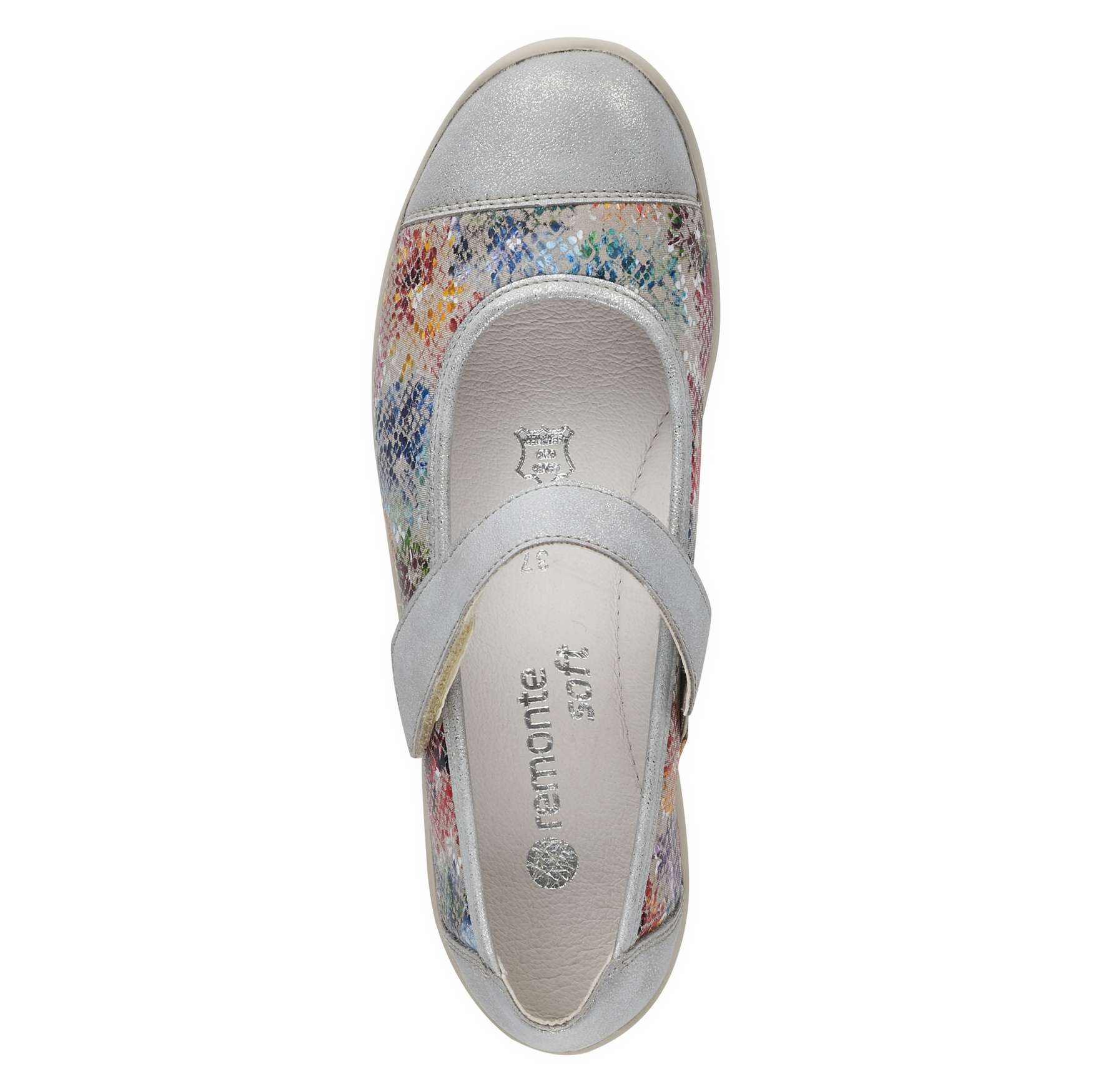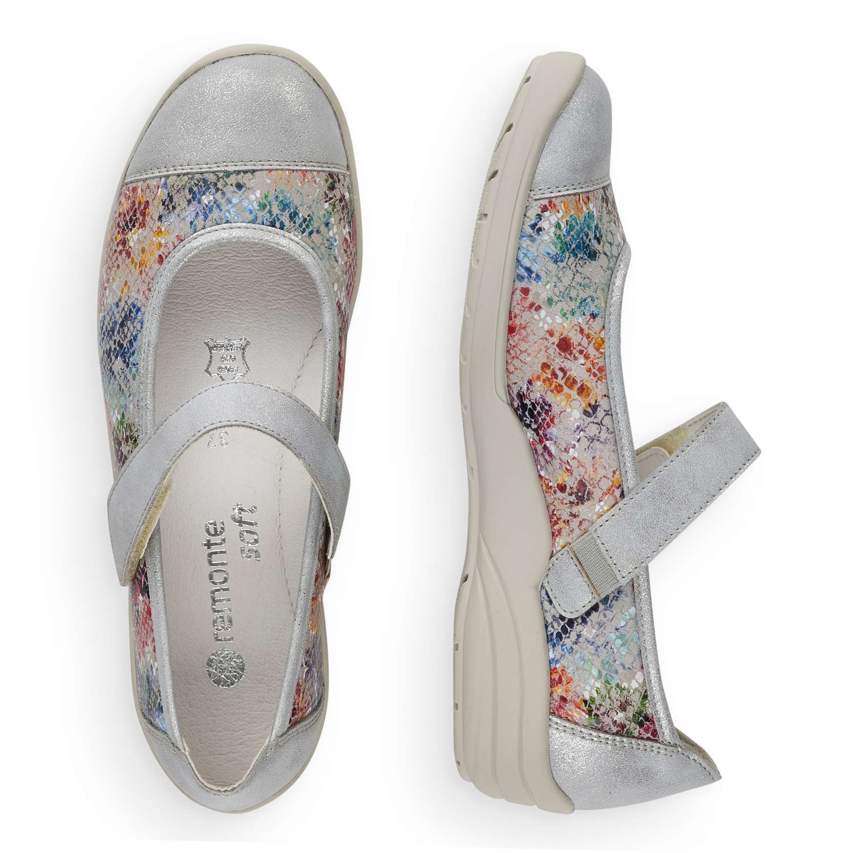 Obuv REMONTE – jedná se o vyšší řadu značky RIEKER, tato obuv se vyznačuje vynikající kombinací svrchních materiálů. Dámská polobotka je zdobená barevným potiskem a metalickými prvky. Pro Vaše pohodlí je řemínek přes nárt na jedné straně upevněn pružnou gumičkou a na druhé má zapínání na suchý zip, co Vám umožní nastavit si botu podle svých potřeb. Unikátní vyjímatelná stélka z paměťové pěny změkčí došlap a také se maximálně přizpůsobí tvaru Vašeho chodidla. Tuto obuv oceníte jak na procházce městem, tak na procházce přírodou.