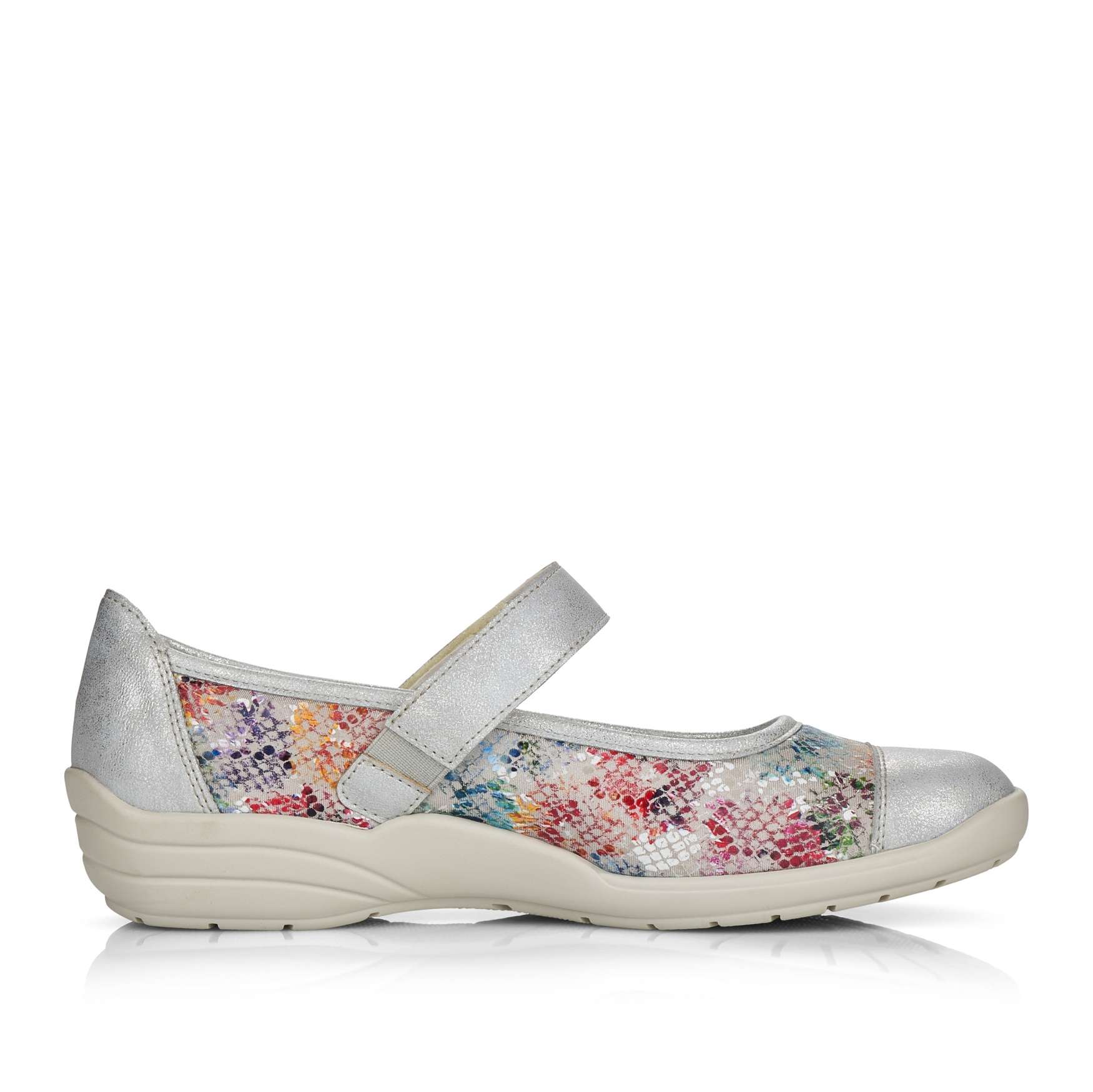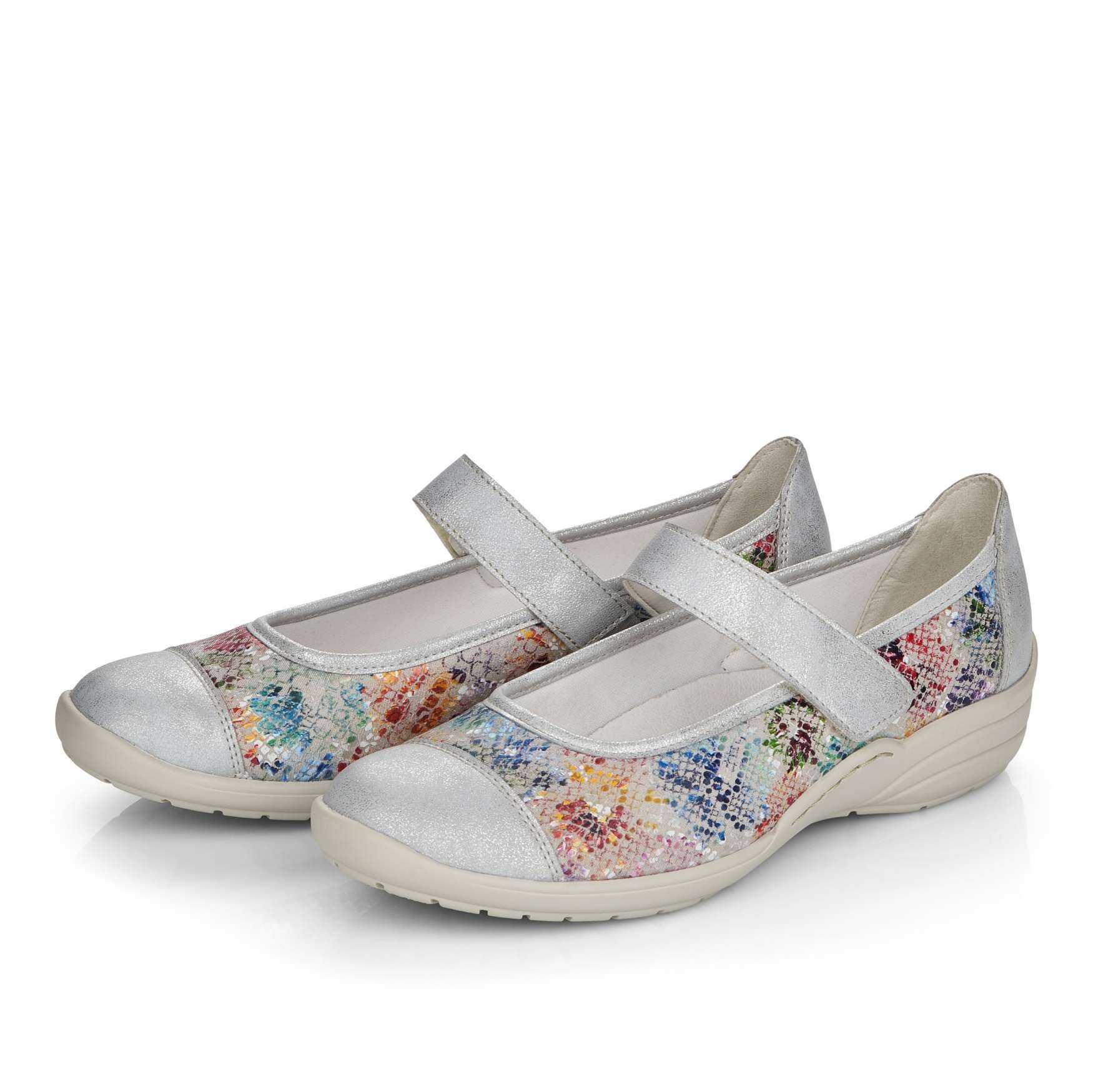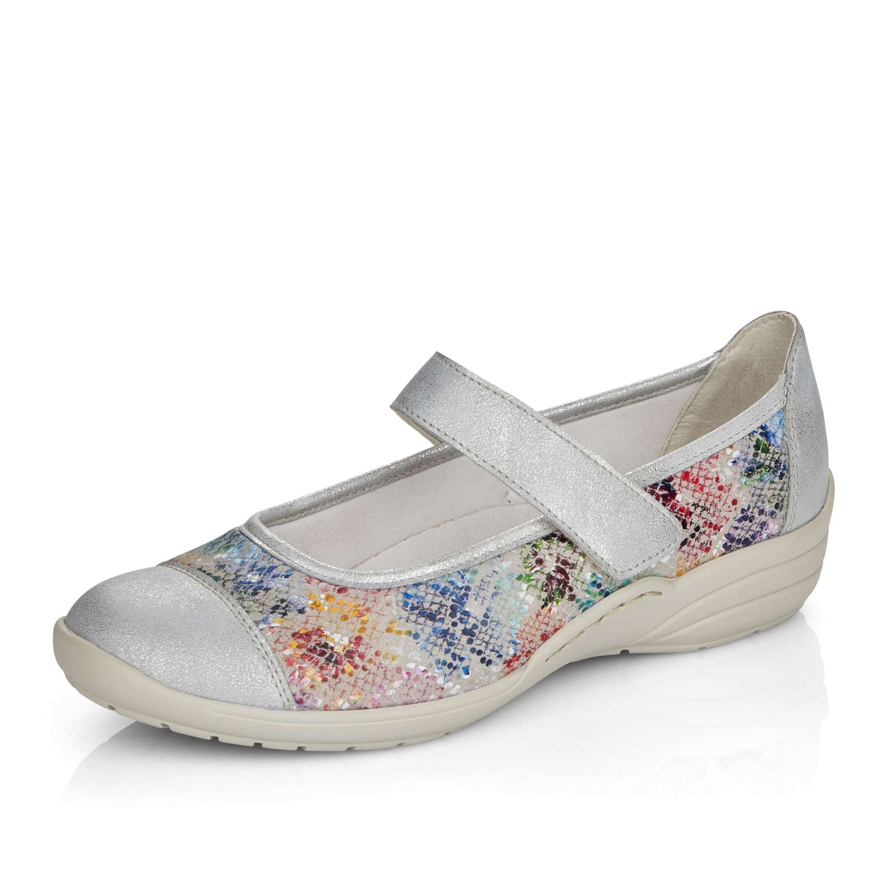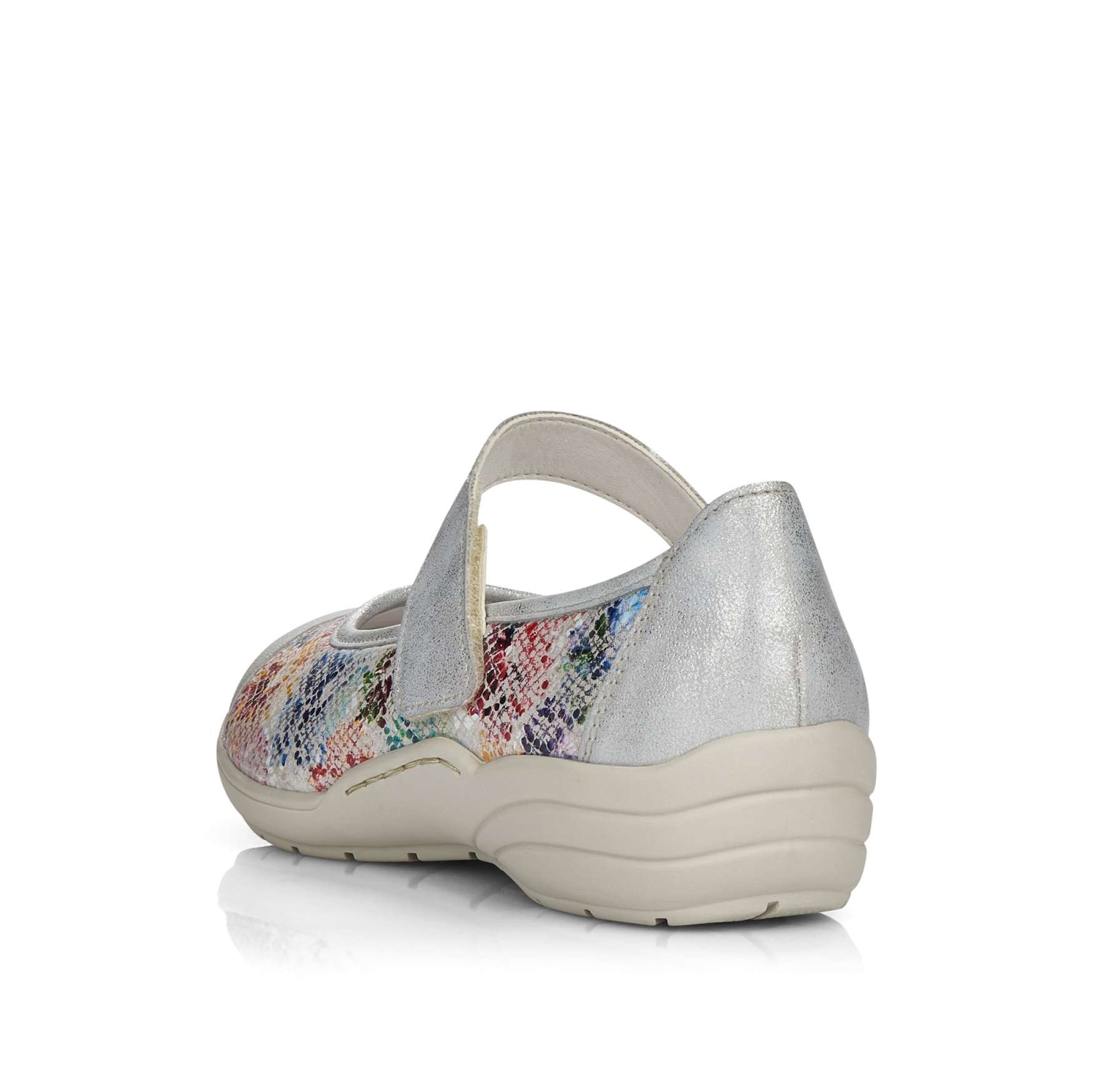 Obuv REMONTE – jedná se o vyšší řadu značky RIEKER, tato obuv se vyznačuje vynikající kombinací svrchních materiálů. Dámská polobotka je zdobená barevným potiskem a metalickými prvky. Pro Vaše pohodlí je řemínek přes nárt na jedné straně upevněn pružnou gumičkou a na druhé má zapínání na suchý zip, co Vám umožní nastavit si botu podle svých potřeb. Unikátní vyjímatelná stélka z paměťové pěny změkčí došlap a také se maximálně přizpůsobí tvaru Vašeho chodidla. Tuto obuv oceníte jak na procházce městem, tak na procházce přírodou.