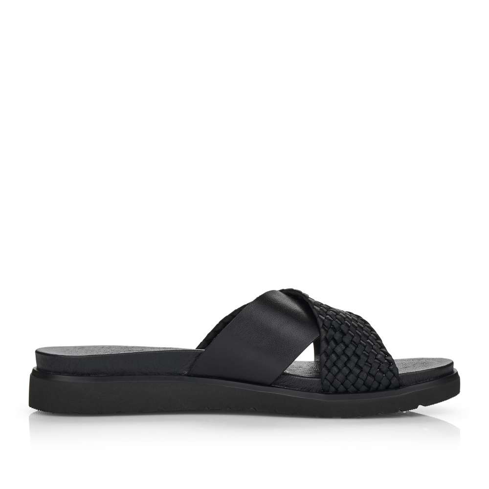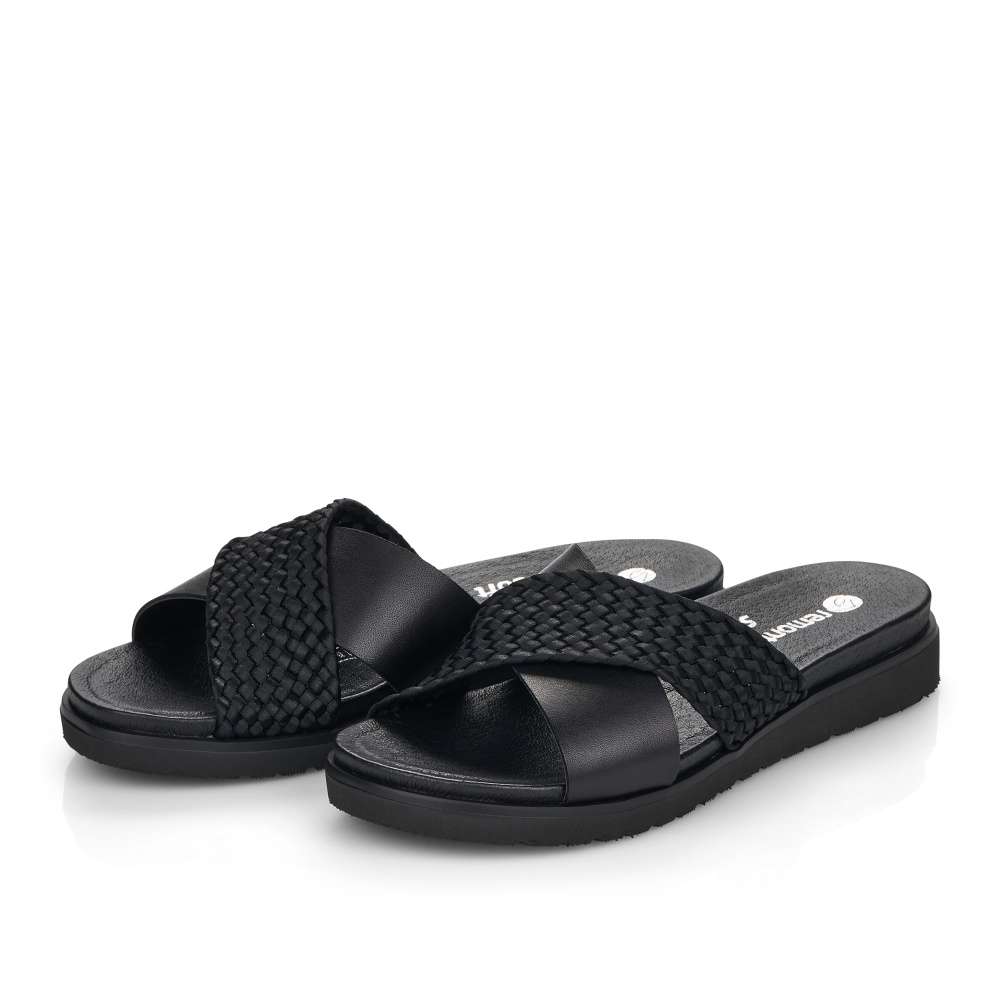 Obuv REMONTE je vyšší řadou značky RIEKER a vyznačuje se kvalitou použitých materiálů. Boty Vám díky tomu zajistí maximální komfort a pohodlí při celodenním nošení. Tento dámský nazouvák černé barvy je zdoben překříženými pásky v přední části. Vytváří dokonalý jednoduchý vzhled, a bude jednoduché ho sladit k jakémukoliv outfitu.