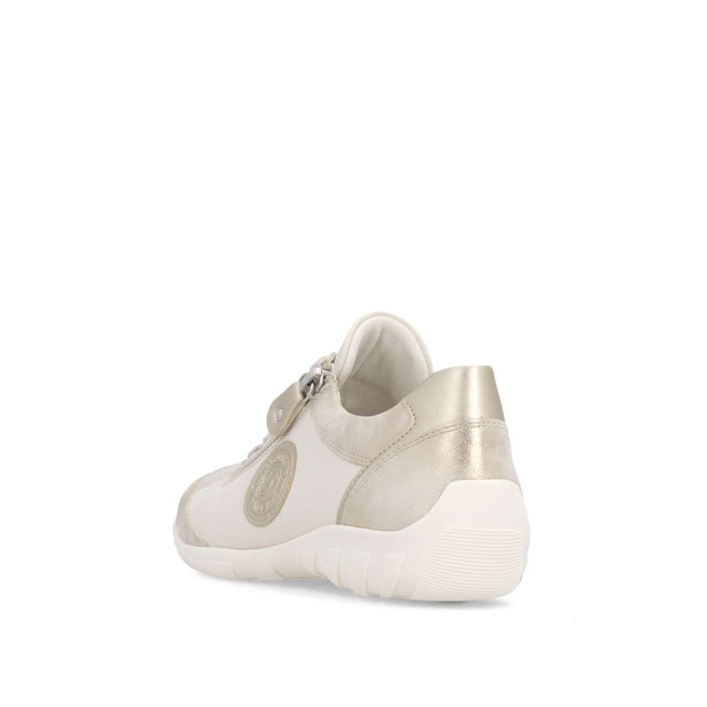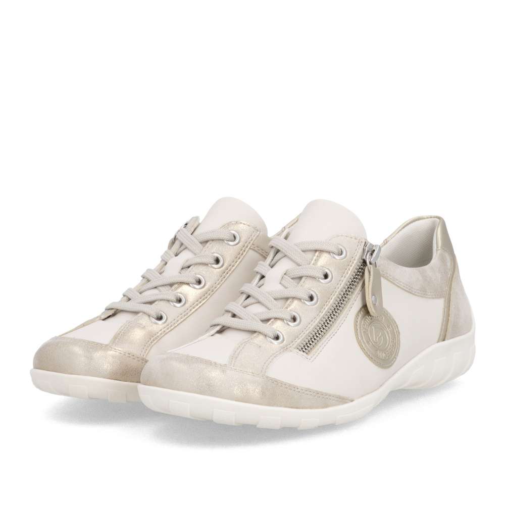Obuv REMONTE představuje prémiovou řadu značky RIEKER, která se vyznačuje vysokou kvalitou použitých materiálů a precizním zpracováním. Tyto tenisky nejsou jen obuví – jsou projevem vašeho stylu, individuality a sebevědomí. Již na první pohled upoutají působivou kombinací barev, jemnými odlesky a výrazným logem značky, které vytvářejí vizuálně atraktivní efekt. Praktické detaily, jako klasické šněrování spojené s funkčním zipem na nártu, umožňují snadné a přesné nazutí, přičemž si je můžete upravit přesně podle tvaru vaší nohy. Vyjímatelná měkká stélka, přizpůsobivá chodidlu, poskytuje pohodlí a podporu během celého dne. Flexibilní podešev zajišťuje stabilitu a přirozený pohyb chodidla. Tyto tenisky jsou stvořené pro ženy, které chtějí být nepřehlédnutelné, ale zároveň si cení komfortu a funkčnosti – pro ty, které nechtějí dělat kompromisy mezi stylem a pohodlím.
