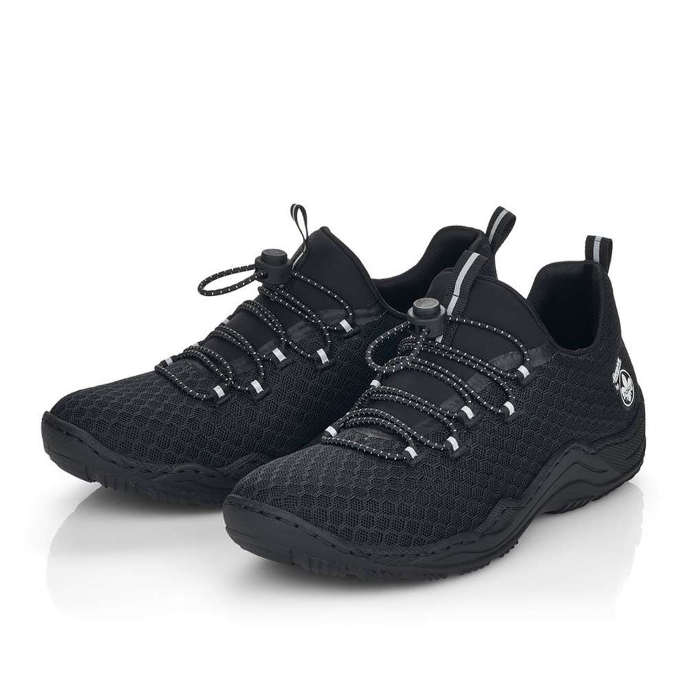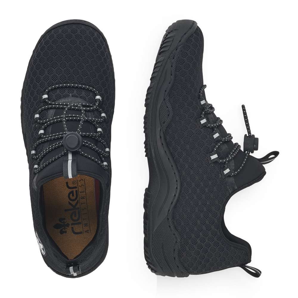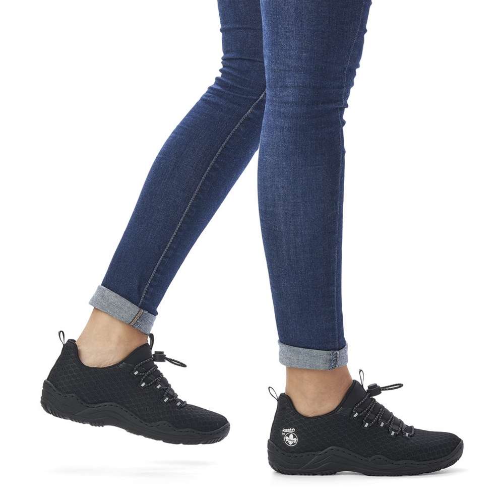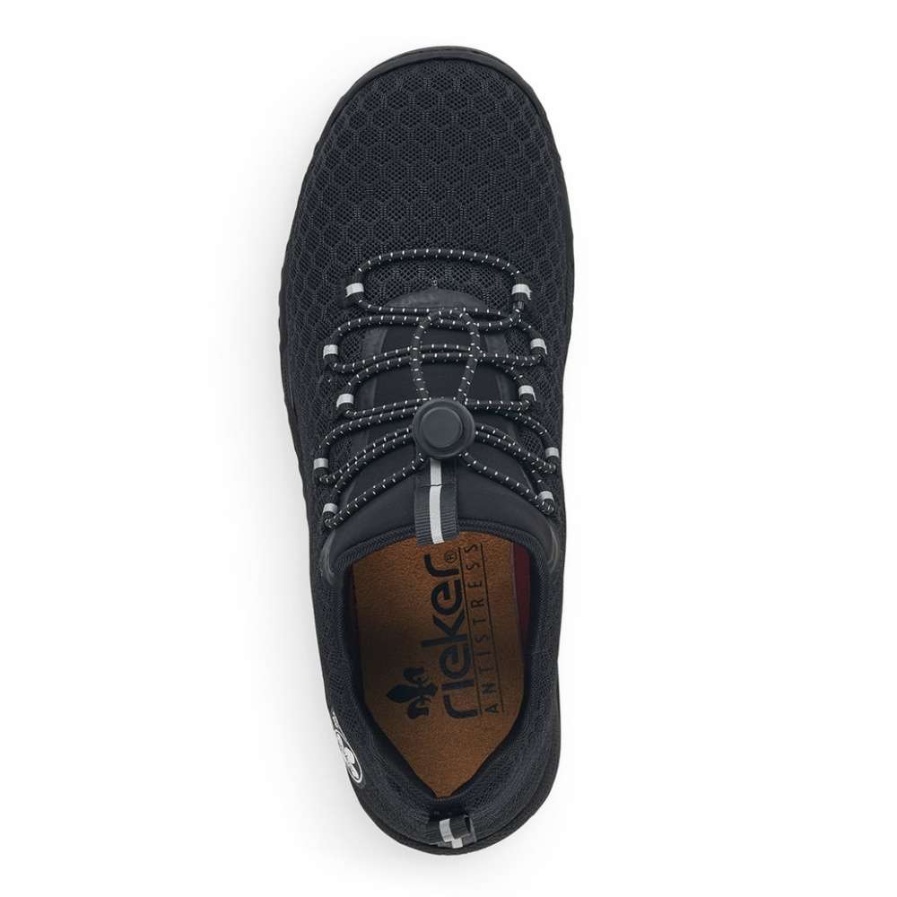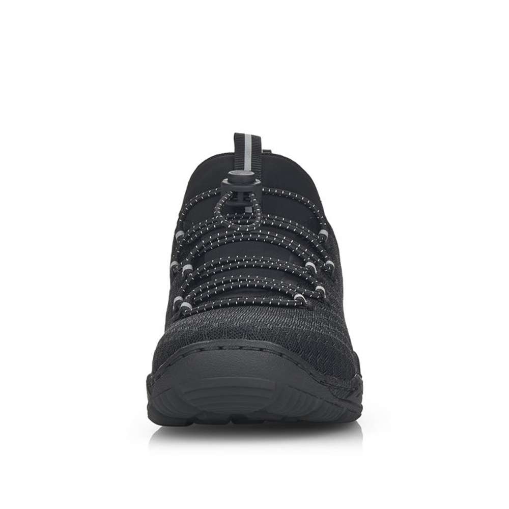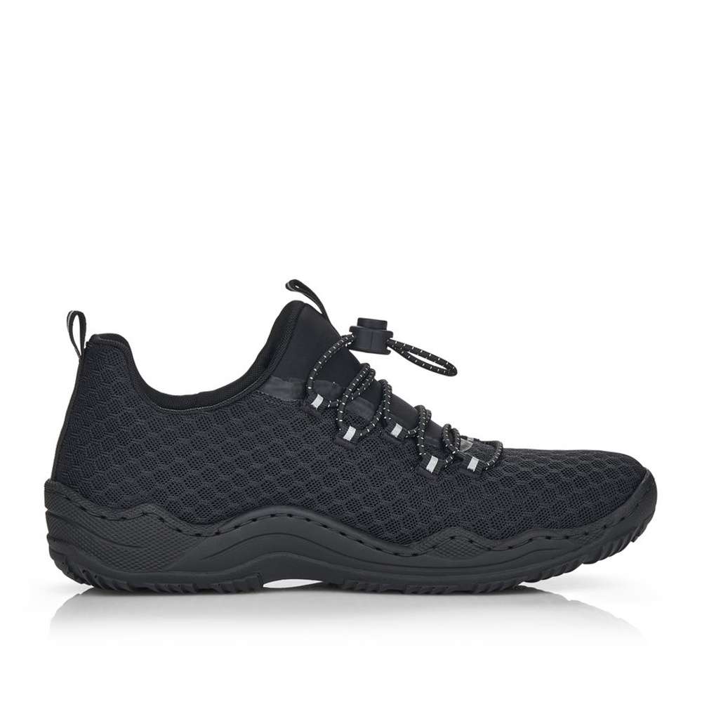 Tyto sportovní tenisky značky RIEKER využijete jak do práce, tak třeba na vycházky do přírody či do města. Pružný textilní svršek je na patě zdobný kontrastním logem značky. Obuv si snadno přizpůsobíte díky šněrování pružnou gumičkou s jednoduchým systémem na utahování. Měkká vyjímatelná stélka společně s technologií Antistress v podešvi Vám zajistí pocit pohodlí na každém kroku. Díky své neutrální barvě budou tyto tenisky vypadat skvěle snad s každým outfitem.