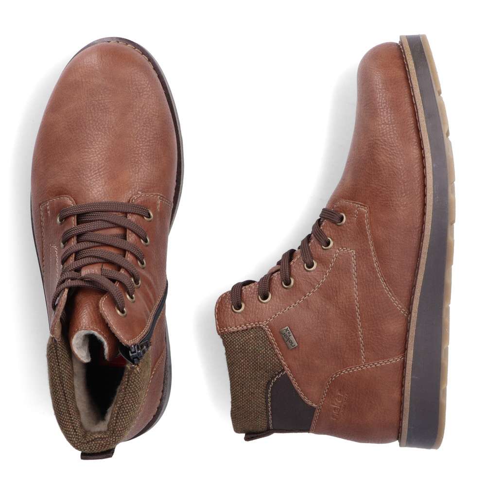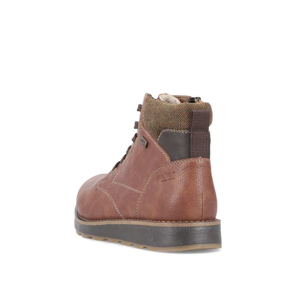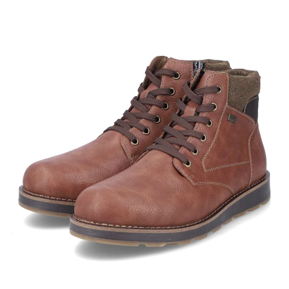 Pro všechny pány, kteří hledají svou ideální obuv do chladnějších dnů, přinášíme kotníkové boty RIEKER, které vás okouzlí nejen svojí stylovou hnědou barvou, ale také skvělými vlastnostmi. Jejich svršek je vybaven nepromokavou membránou, vytištěné logo značky a barevně kontrastní lem horního okraje dodává obuvi moderní vzhled. Se zipem pro snadné obutí a šněrováním pro dokonalé přizpůsobení jsou tyto boty praktické a funkční. V chladných dnech oceníte zateplenou podšívku a ve spojení s měkkou stélkou zajistí pohodlí a teplo. Stabilní podešev pak poskytne dostatečnou oporu při chůzi. Tyto kotníkové boty jsou skvělou volbou pro každého muže, který hledá stylovou a spolehlivou obuv pro podzim a zimu. Technologie: Antistress – díky čtyřem antistresovým vlastnostem – lehkosti, pružnosti, prostornosti a vynikající absorpci nárazů – vám boty RIEKER nabídnou komfortnější chůzi. Rieker TEX – funkční vrstva, díky které je bota nepromokavá a přesto prodyšná.