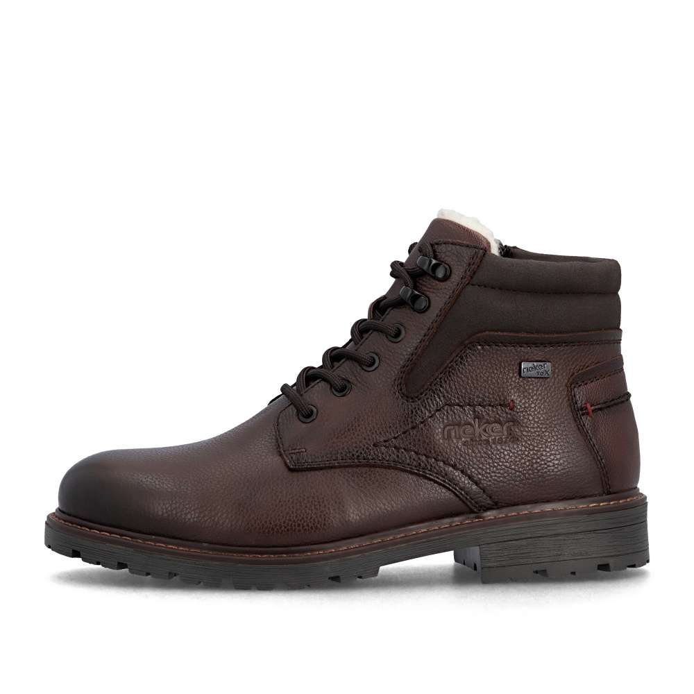 Tyto kotníkové boty značky RIEKER vás spolehlivě provedou chladným obdobím zimních měsíců. Jejich odolný svršek je vybaven voděodolnou membránou, která ochrání před vlhkem a vnitřek s podšívkou z ovčí vlny nabízí příjemné teplo a komfort při nošení. Kombinace šněrování a zipu z vnitřní strany zajistí pohodlné obutí a dokonalou úpravu tvaru nohy. Každým krokem oceníte pevnou podrážku s vyšším dezénem, ??který dodává stabilitu. Tento model bot RIEKER je ideální volbou obutí na zimu bez kompromisů. Technologie: Antistress – díky čtyřem antistresovým vlastnostem – lehkosti, pružnosti, prostornosti a vynikající absorpci nárazů – vám boty RIEKER nabídnou komfortnější chůzi. Rieker TEX – funkční vrstva, díky které je bota nepromokavá a přesto prodyšná. Podšívka je vyrobena z pravé ovčí vlny.