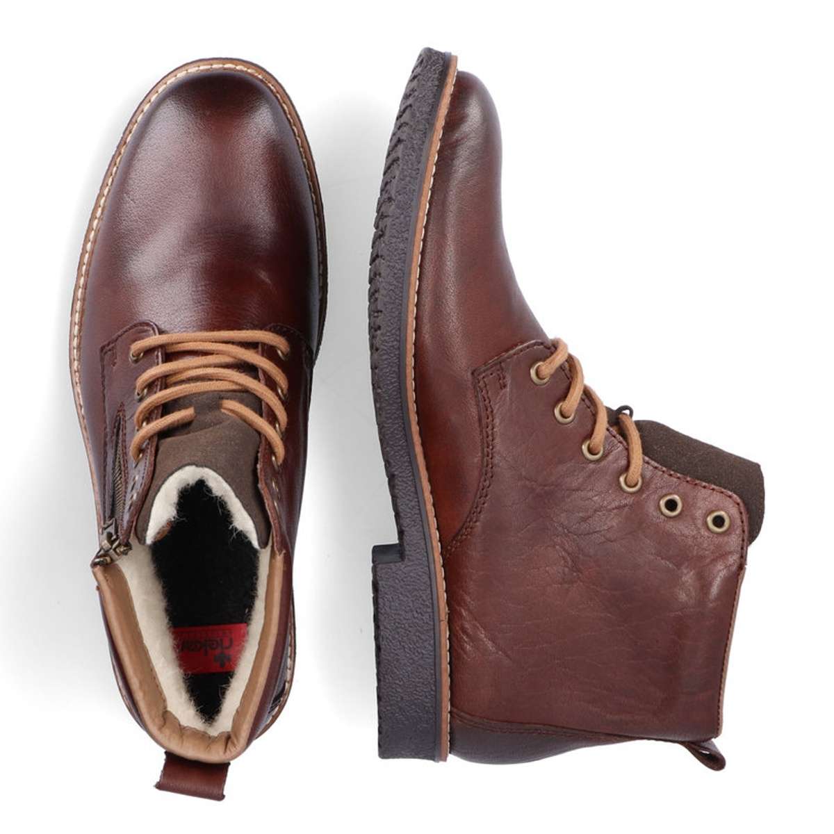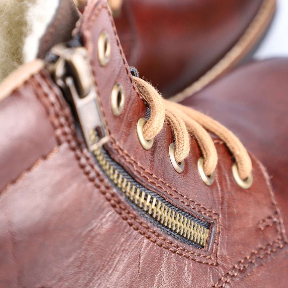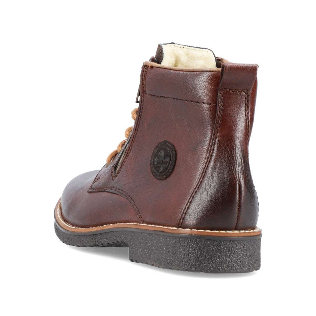 Tyto hnědé kožené kotníky značky RIEKER zaručeně oživí Vaše zimní outfity a budou Vás bavit. Zdobnými prvky jsou prošívání a logo značky na vnější straně. Pro snadné nazouvání slouží nejen šněrování, ale také funkční zip. Decentní podešev je vyrobena z kvalitního materiálu, který je doplněn o technologii Antistress. Pohodlí na každém kroku Vám zaručí měkká stélka a vy je nebudete chtít zout. Skvělý společník a zároveň pohodlná botička, to tady máme právě pro Vás. Technologie: Antistress – podešev je díky této technologii lehká, flexibilní, absorbuje nárazy při došlapu a snadno se přizpůsobí každé noze Podšívka je vyrobena z pravé ovčí vlny.