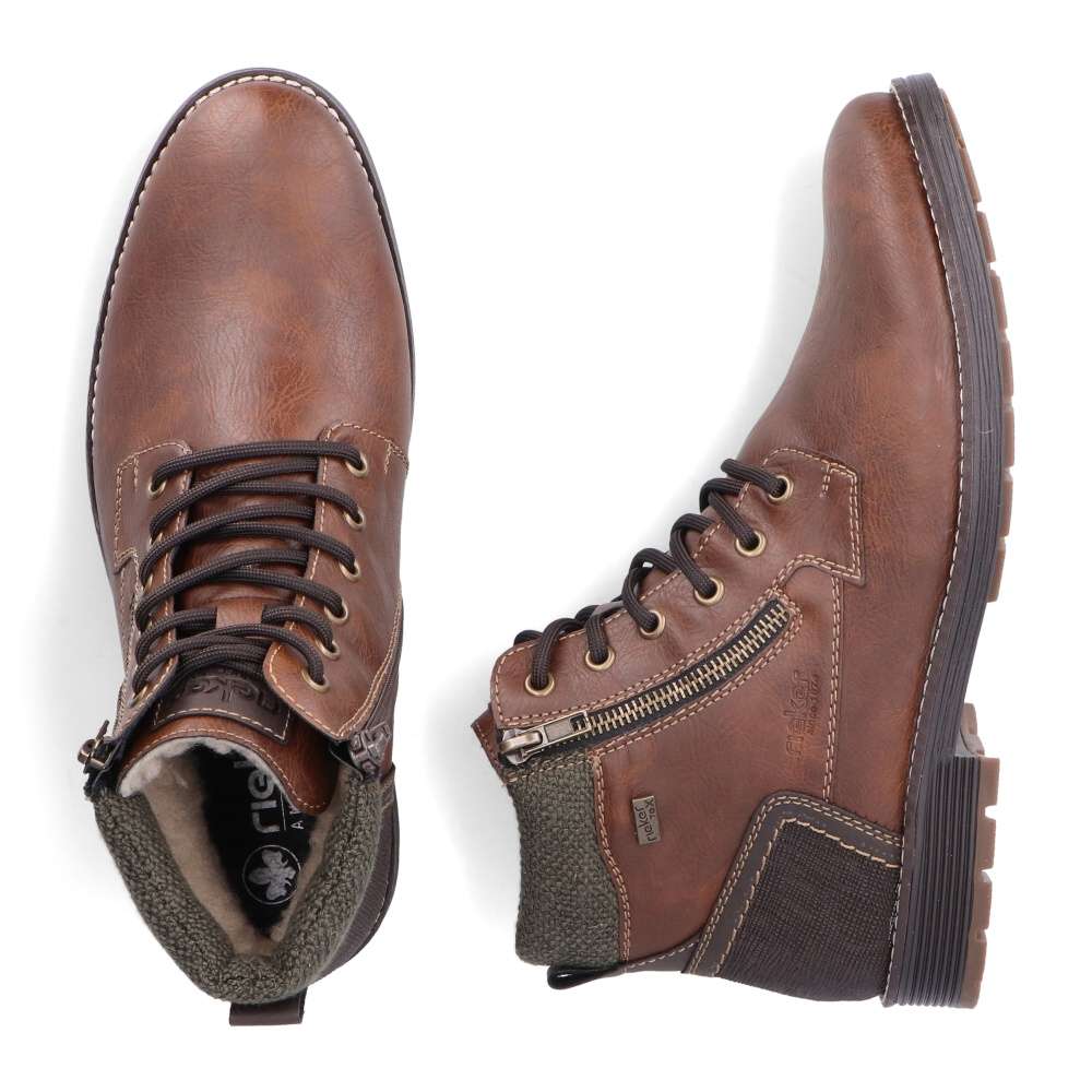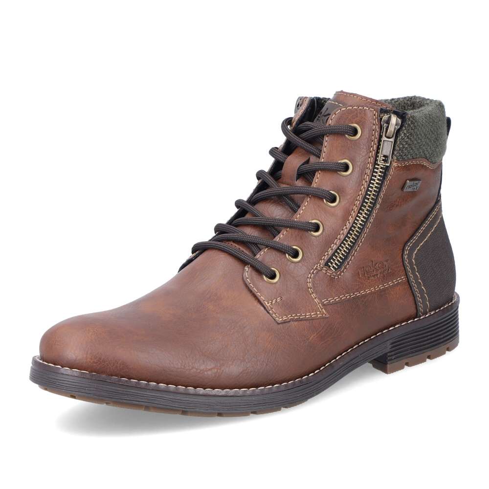 Tento model pánských bot od RIEKER spojuje špičkový styl s praktickými prvky pro každodenní nošení. Hnědý svršek s kontrastními prvky a nepromokavou membránou dodává botám sofistikovaný vzhled a zároveň ochranu před nepříznivým počasím. Boční zipy a šněrování umožňují snadné obouvání a přizpůsobení šířky nohy. Pro vytvoření dokonalého pohodlí je měkká stélka vyjímatelná a stabilní podešev zajišťuje bezpečí při chůzi, zatímco zateplení ovčí vlnou udržuje vaše nohy v teple. Tyto boty jsou ideální volbou pro muže, kteří oceňují spojení elegance, funkčnosti a pohodlí ve své obuvi.