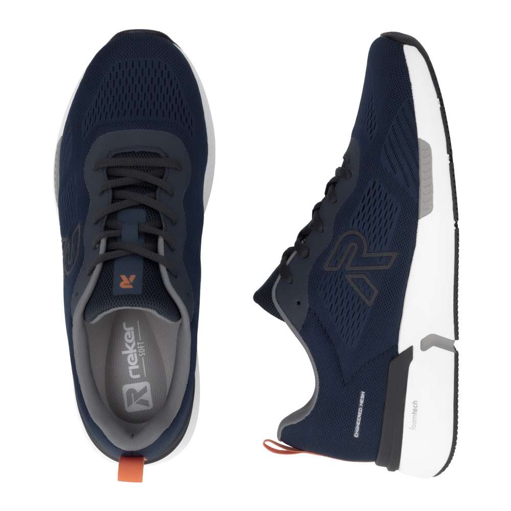 Tyto pánské tenisky RIEKER zaujmou nejen moderním vzhledem, ale také promyšlenou funkčností, která zajistí pohodlí během celého dne. Jejich textilní svršek se zajímavou strukturou, výrazným logem značky a kontrastně oranžovou aplikací v zadní části dodává botám dynamiku a stylový charakter, díky čemuž se stanou výrazným doplňkem každého outfitu. Pružný materiál perfektně kopíruje tvar chodidla a optimální přizpůsobení poskytne šněrování. Měkká vyjímatelná stélka zajistí maximální komfort a pružnou podporu chodidla, přičemž ji můžete jednoduše vyjmout pro údržbu nebo výměnu podle potřeby. Podešev s tlumením nárazů zvyšuje stabilitu a jistotu při chůzi, přičemž podporuje přirozený pohyb nohy a zároveň doplňuje stylový vzhled bot. Tyto tenisky jsou ideální volbou pro každodenní nošení, městské procházky či volnočasové aktivity, neboť spojují komfort, funkčnost a styl v jednom. Dokonalá souhra moderního vzhledu a maximálního pohodlí díky funkčním technologiím to jsou boty RIEKER Sport. Technologie: Antistress – díky čtyřem antistresovým vlastnostem – lehkosti, pružnosti, prostornosti a vynikající absorpci nárazů – vám boty RIEKER nabídnou komfortnější chůzi. Rieker Soft – unikátní stélka vyrobená z prodyšného materiálu, která svým tvarem a materiálem zajistí pocit pohodlí při celodenním nošení. Tato bota je vybavena vyjímatelnou stélkou.